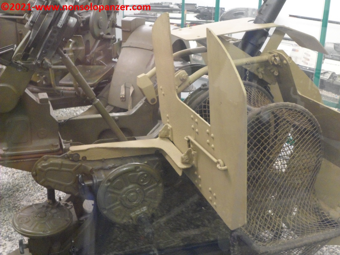 La 2cm Flak-38 del Defense Technology Museum di Koblenz è un bell’esemplare che si distingue da quelli più comunemente visibili in altri musei o di proprietà privata in quanto dotata della scudatura avente il compito di proteggere i serventi dal fuoco avversario. Essendo protetta da un vetro, non ho potuto fare foto ad ogni dettaglio dell’arma ma spero che le immagini sottostanti siano di interesse a modellisti ed appassionati.
