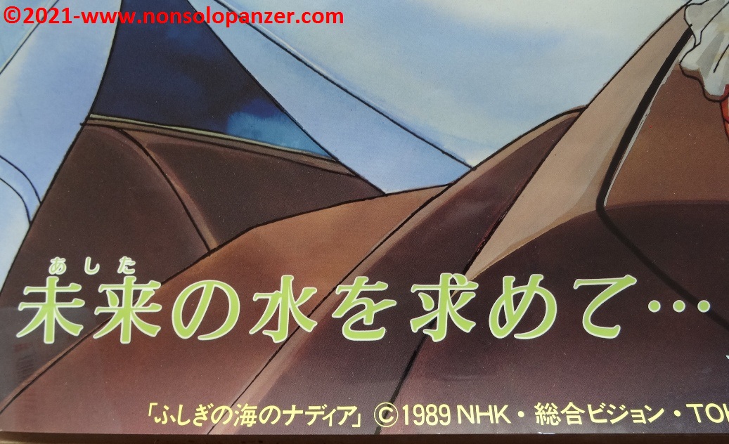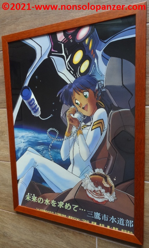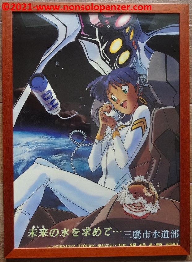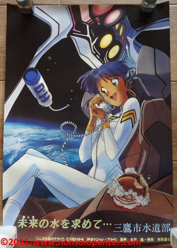 I have been an admirer of “Nadia: The Secret of Blue Water” since its first viewing on Italian TV. I express my passion for the series by making figures like “Nadia – South Island Version” and buying memorabilia like the artbook “Return of Nadia” and the catalogue and Clear Files of “Nadia: The Secret of Blue Water 30th Anniversary Exhibition“. I have a particular interest in Japanese posters dedicated to the series, and it was a great joy and satisfaction when I was able to purchase a rarity like the poster made for the Mitaka City Waterworks Department.