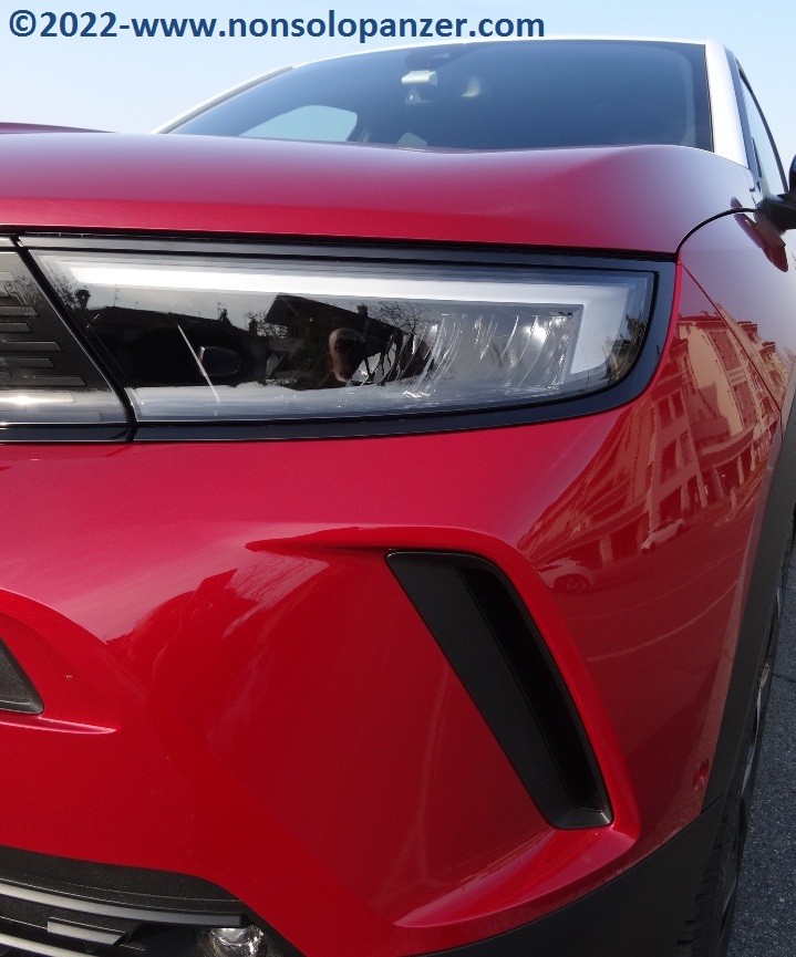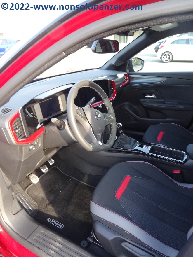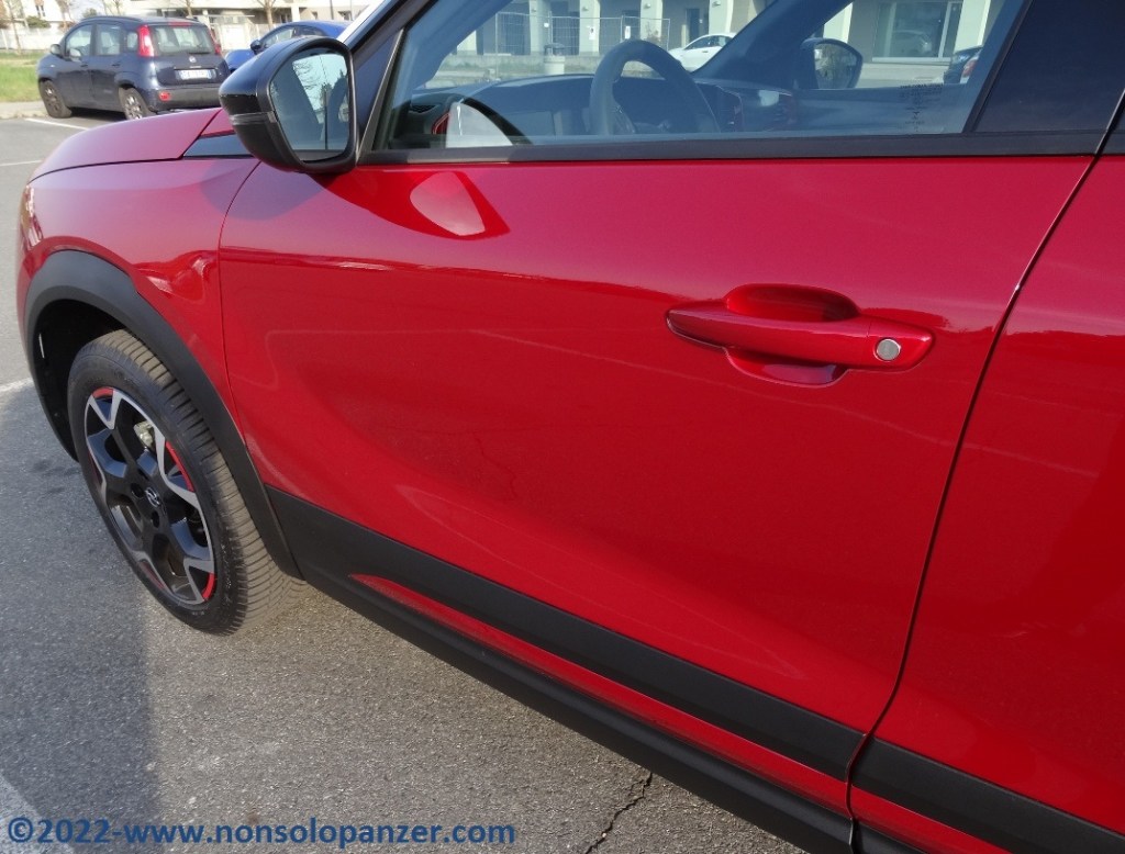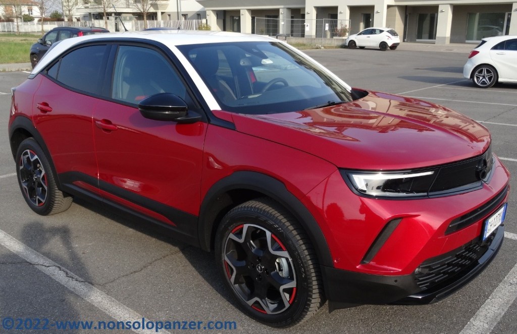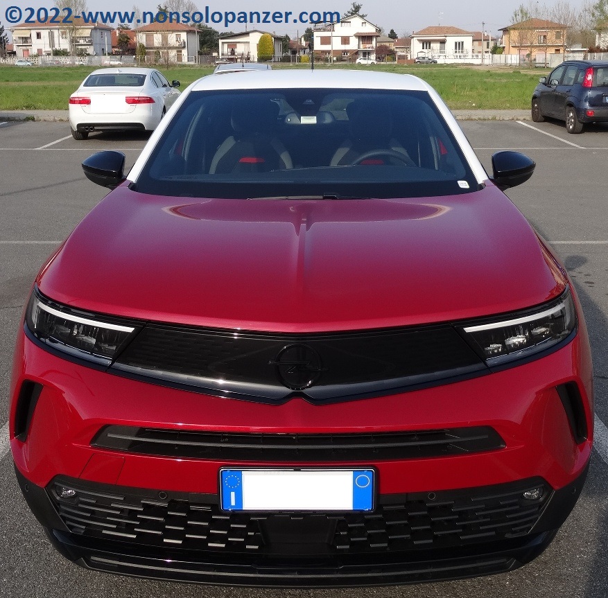 I started hanging around car dealers in December last year. Ford, Peugeot, Volkswagen, without the lightning strike I was looking for. Then, remembering the good service provided a few months earlier during the periodic maintenance of my Fiat 500, I stopped at the Opel dealer near my home. In the showroom I had the epiphany: Opel “Mokka” model 2021. Completely redesigned, the new “Mokka” immediately won me over. Overwhelmed by passion, I opted for the GS Line version with its sporty set-up guaranteed by the 130 hp 1.2 Turbo engine and a series of aesthetic elements including the 18-inch wheels with tri-colored alloy rims. About the color, no doubts: Red Rubi. Always in search of maximum originality and breaking every pattern, I discarded the idea of having a roof in black or in the color of the rest of car. Instead, I chose the white roof, an unusual option according to the dealer but, when all was said and done, very good to my taste.