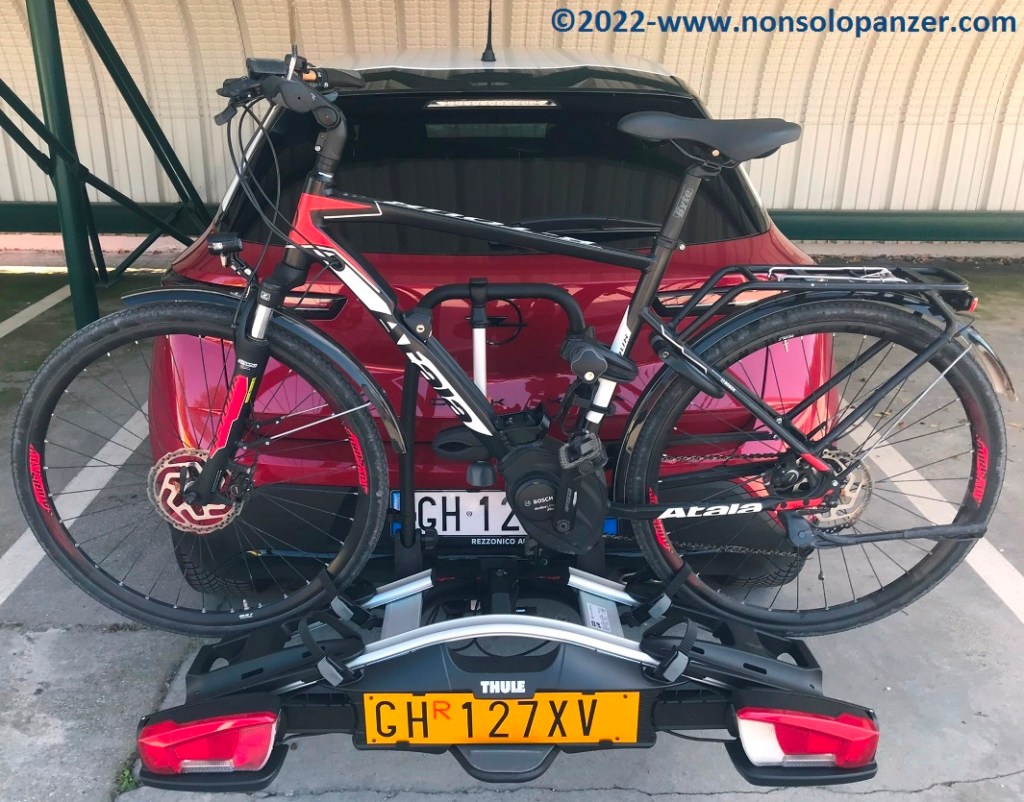 Hoping that my words and the photos shown above demonstrate the quality of the car as much as my enthusiasm, I would add that I asked for the tow bar to be installed immediately so that I could hang the Thule bike rack purchased a few years ago by my father. The useful accessory was promptly ‘seized’ to be used in my new cycling adventures. It is a much more modern product than the bike rack I use with the Fiat 500; the anchorages are more secure and it has a convenient folding system that allows the rear hatch of the car to be opened with the bikes in place. Bear with me, papi!