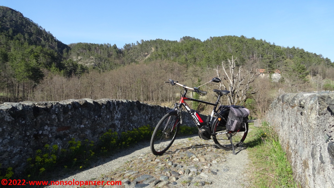 Da Casavecchia ho imboccato la Strada Provinciale 1 su cui, poche ore prima, ero passato con la “Mokka” per arrivare a Martina Olba. Ne ho prontamente approfittato per visitare il Ponte Romanico di Badia che avevo appena intravisto dall’auto. Struttura di grande fascino, molto ben amalgamata all’ambiente circostante; una sorpresa anch’essa imprevista che ha aggiunto una nuova gemma ad una esperienza di scoperta del territorio superiore ad ogni aspettativa.