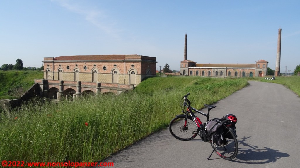 The next day, Saturday 30 April, I left early in the direction of the Second World War Museum on the Po River where I spent most of the morning. The museum proved to be well-kept and interesting beyond my wildest expectations so I will cover it in a separate article. Focusing now on the route I cycled, I have to say that the fifteen kilometers that separated Carbonara di Po from Felonica are not lacking in charm thanks to the environment created by the river, the atmosphere of the spring morning, and the nineteenth-century structures built for water management, of which I would like to point out, in particular, the Stabilimento Idrovoro La Gonzaghese.