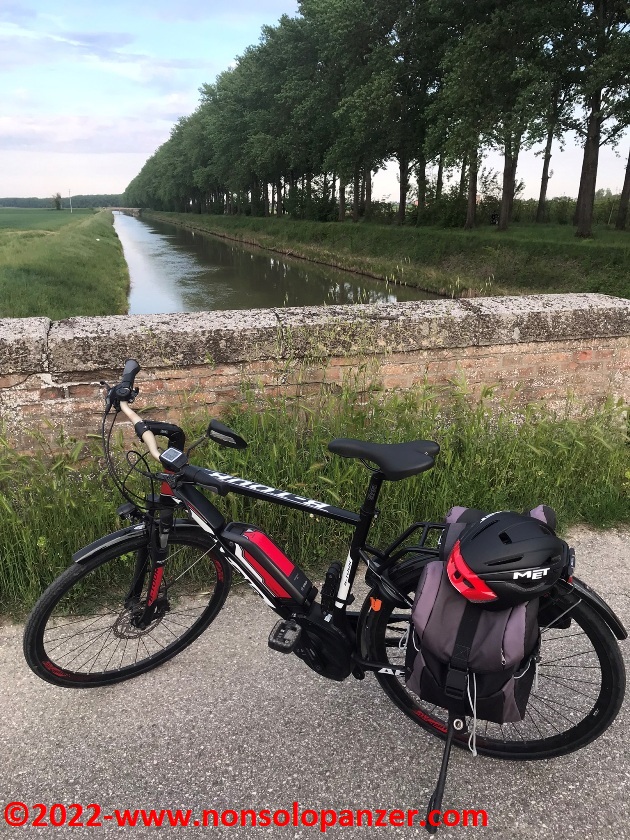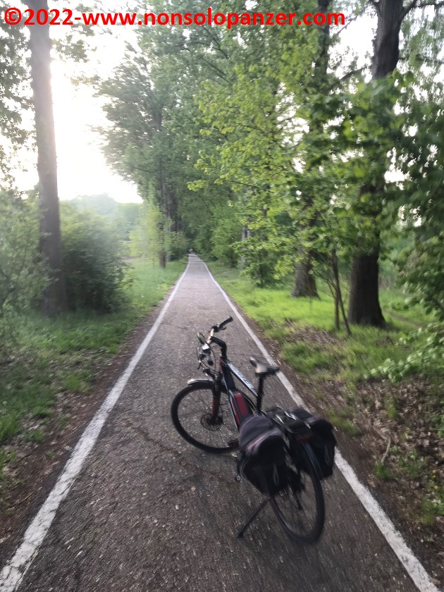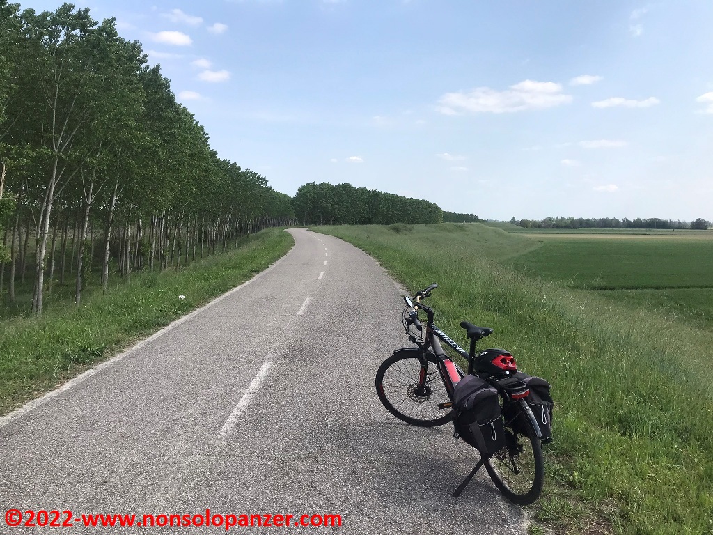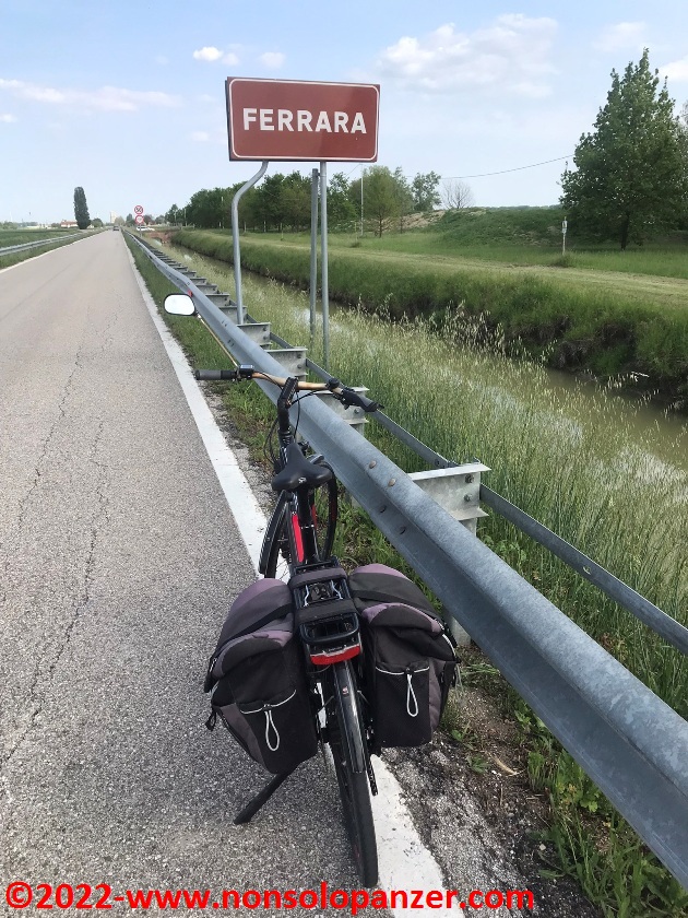 In the late afternoon, I resumed my journey along the Po embankment with destination Ferrara. Although I was aware that I would arrive in the late afternoon and consequently return to the hotel in the evening, I enthusiastically tackled the fifty or so kilometers that separated me from the city, eager to discover new and unexpected sights. I post below the photos taken on both the outward journey and the return from Ferrara. In addition to the beauty of the territory crossed, I would like to point out the excellent network of cycle paths that greatly enhances the pleasure of the experience on two wheels.