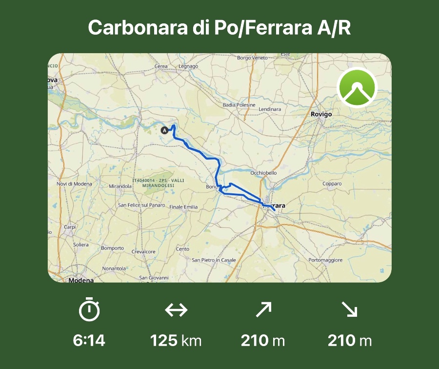 I left Ferrara at six in the afternoon and arrived at the hotel at nine in the evening. In all, I covered 125 kilometers doing a small loop outside Ferrara. A tough day that fully satisfied both eyes and legs. The environments traversed, the historic buildings admired, the people I met were the soul of a cycling tour that I will remember for a long time and that I could celebrating by riding the entire stretch from Mantua to Ferrara in the future.