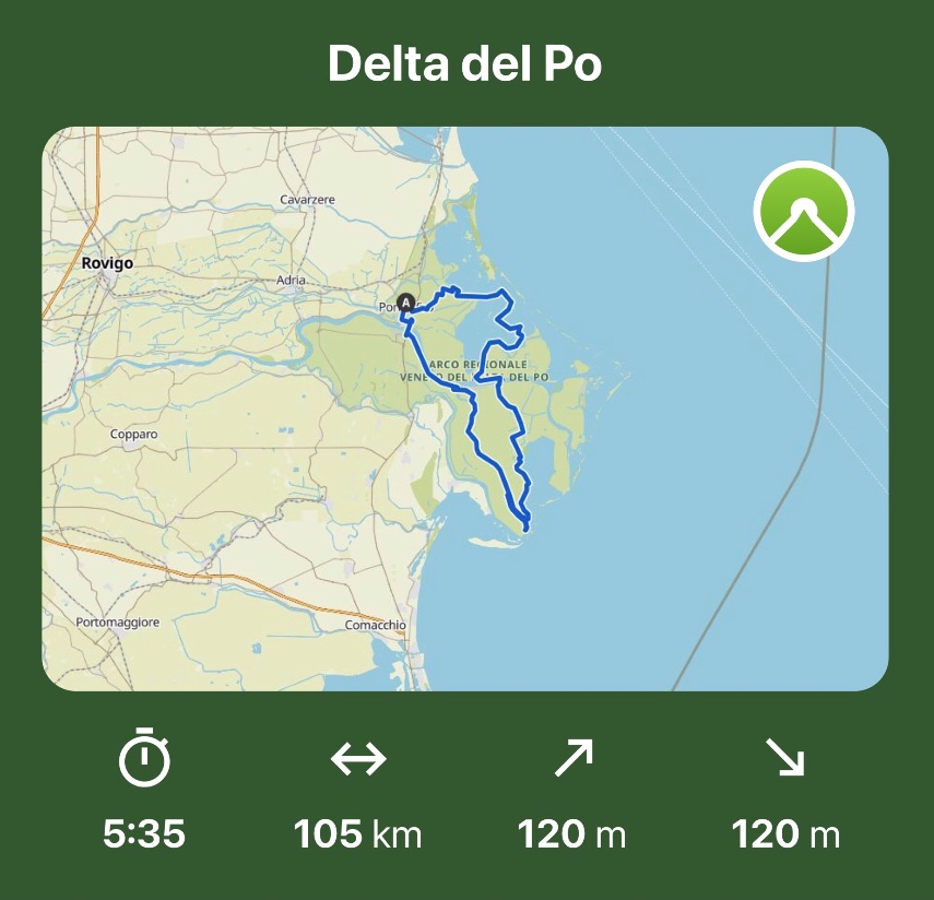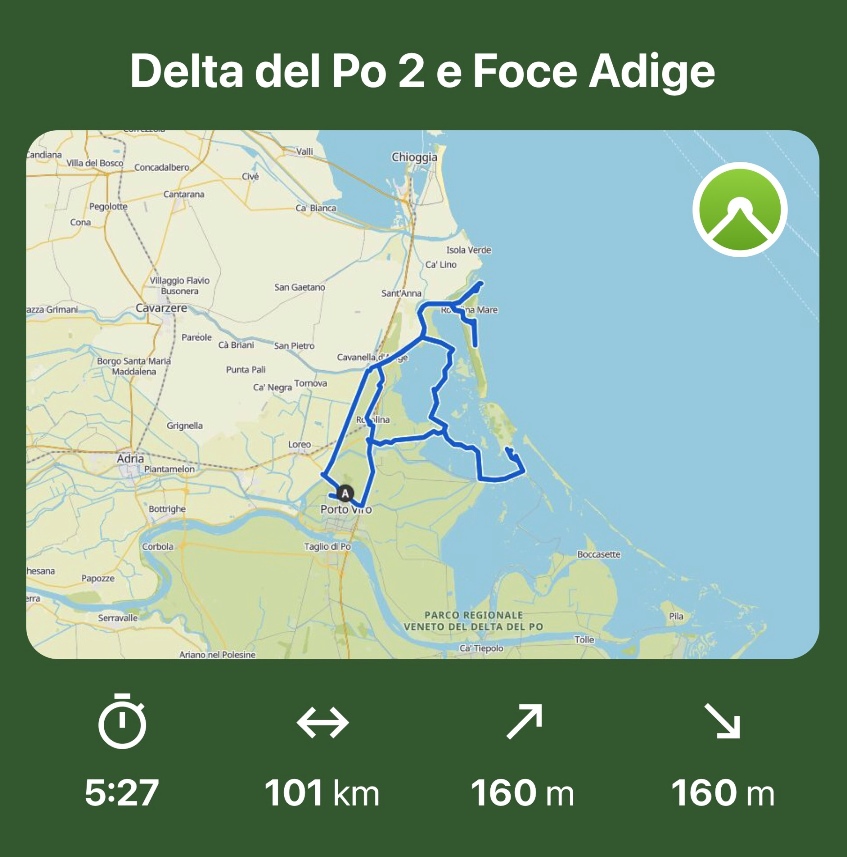 Il mio ultimo giorno trascorso sulla foce del Po si è concluso con ben 102 chilometri percorsi a suggello di un’esperienza sulle due ruote che mi è piaciuta molto pur con alcune inaspettate ombre di cui parlerò di seguito.