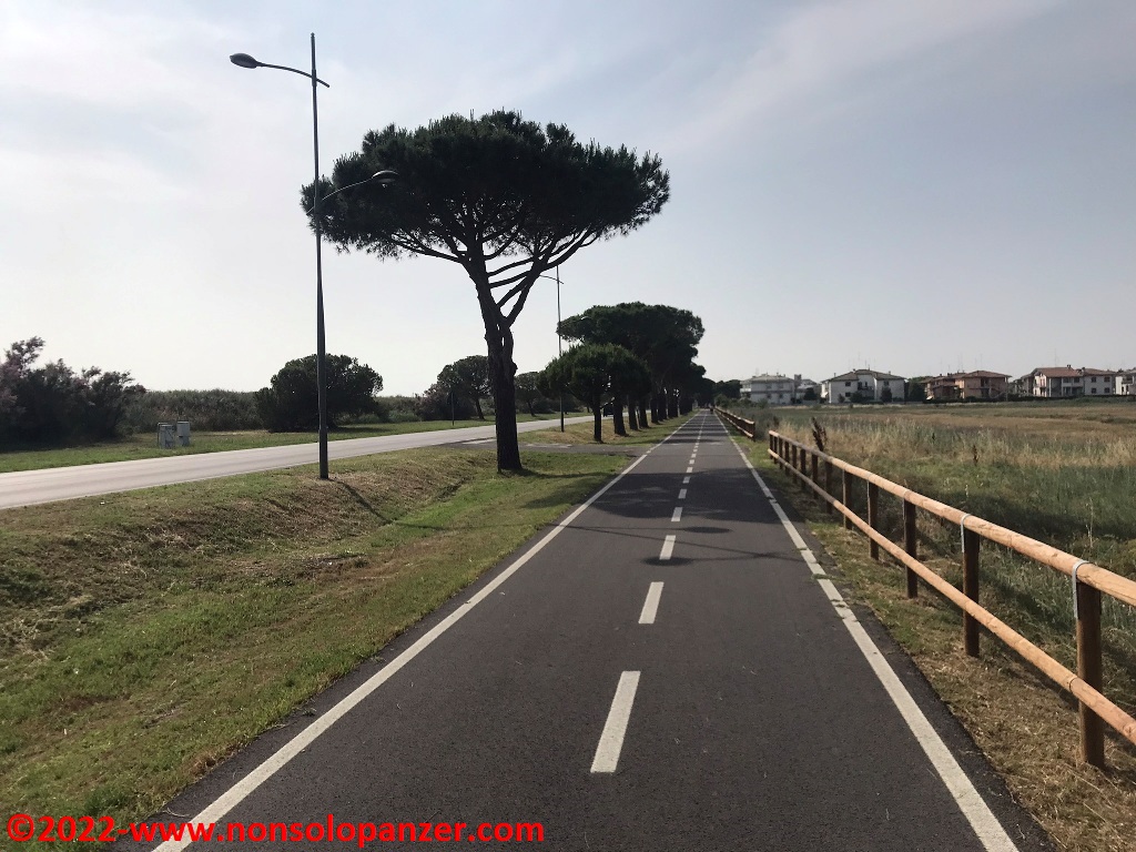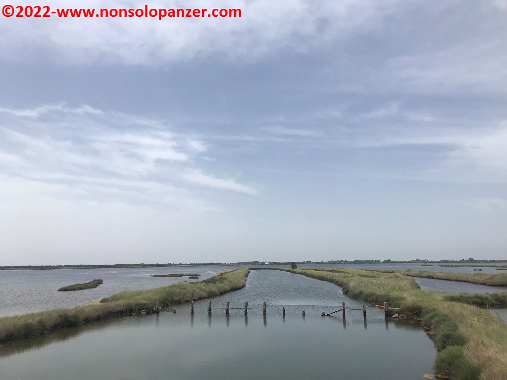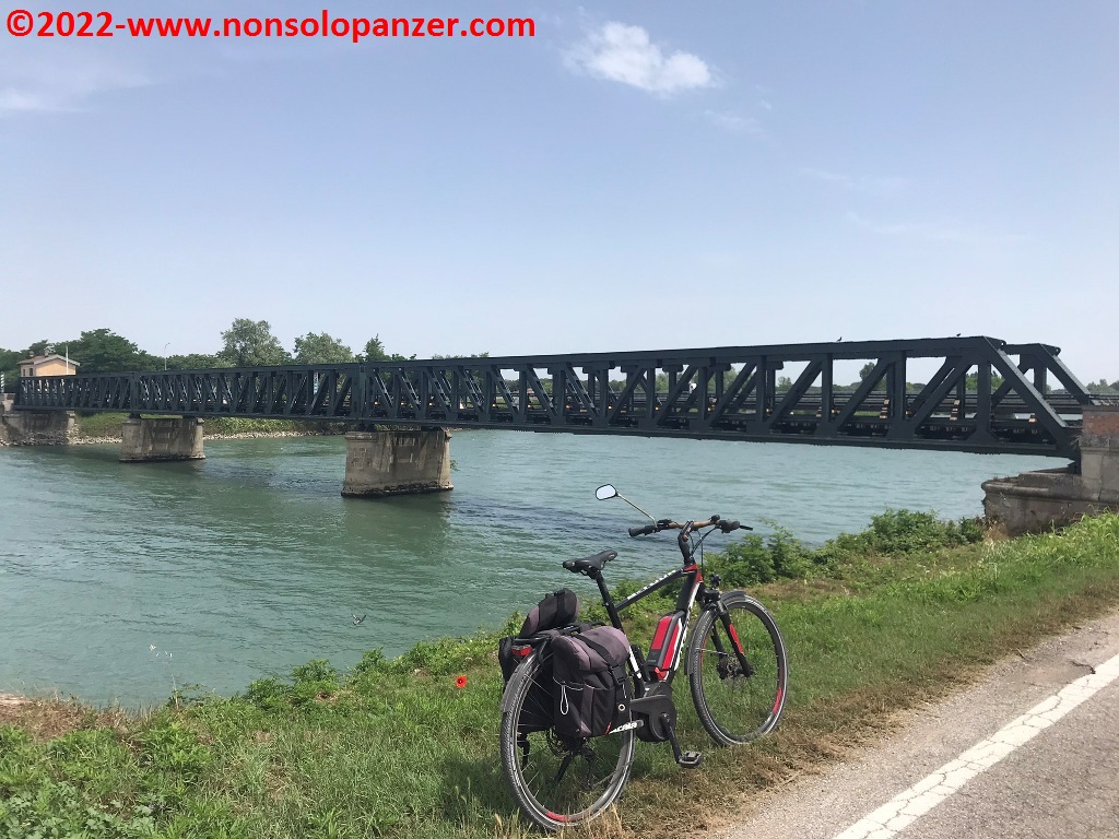 Chiudo con un paio di note. L’ufficio turistico veneto, spinge molto sui percorsi ciclabili disponibili lungo il delta. In realtà, si tratta per lo più di comuni strade, a volte a traffico limitato ma sempre col rischio di essere percorse da auto che viaggiano a velocità eccessive. Occorre, quindi, prestare sempre molta attenzione. Se ciò non bastasse, il Delta del Po è suddiviso orizzontalmente in tre grandi aeree. Non esistono ponti ciclopedonali per passare da una versante all’altro. Salvi rari traghetti dal servizio altalenante e poco chiaro, è necessario usare ponti autostradali fra cui quelli della Statale “Romea”, tutt’altro che sicuri per i ciclisti fin dalle rampe di accesso che portano al ponte vero e proprio.