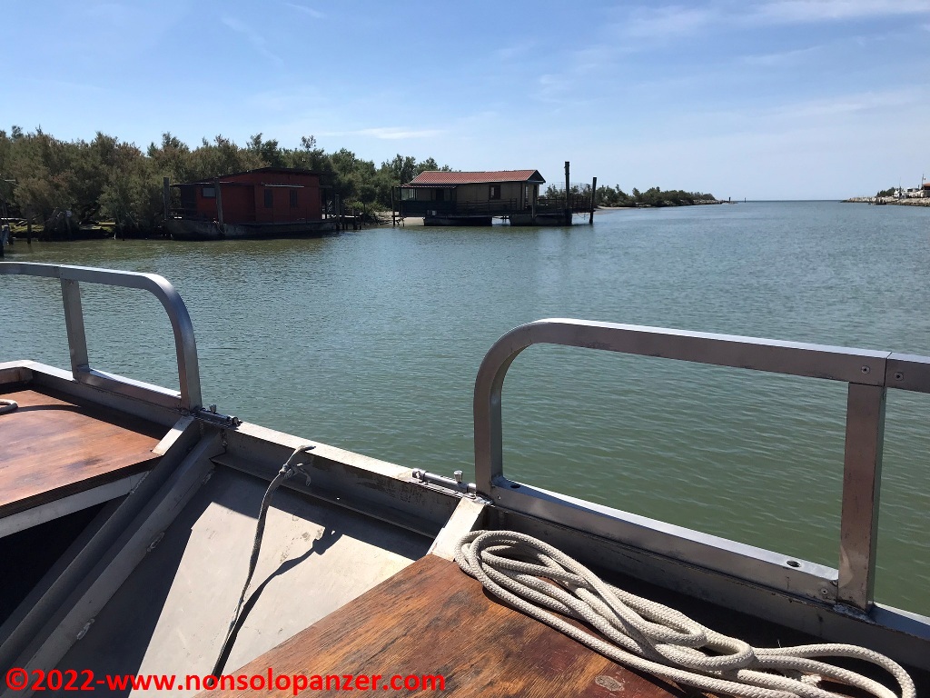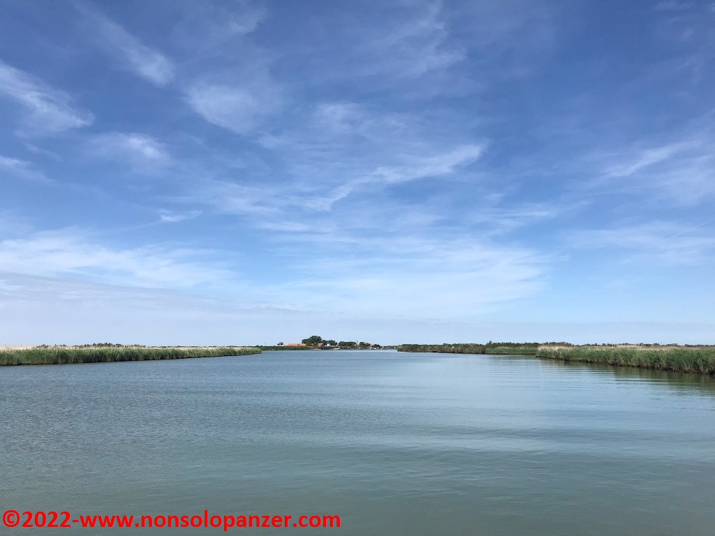 Da “La Baracchina”, ho raggiunto in bici il lungomare di Lido delle Nazioni e ho proseguito verso sud fino a Lido di Spina usufruendo di un simpatico traghetto pedonale a Porto Garibaldi. Con mia grande delusione, non sono riuscito a trovare un percorso ciclabile attorno alle Valli di Comacchio così come altrettanto non raggiungibili sono le Saline di Comacchio. Sono, quindi, stato costretto a tornare sui miei passi e, ripreso il battellino, sono rientrato a Porto Garibaldi.