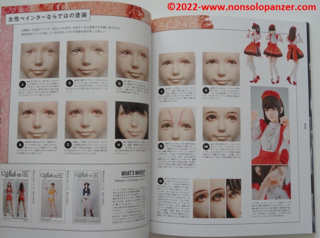 I cannot say how “Figure Beauty Makeup Paint Female Figures To Your Liking!” would be advisable for a Western modeller. The Japanese text is an obvious obstacle to the book’s usability and usefulness. In addition, reference is made to a plethora of products that are difficult to find outside Japan. In any case, the photos and drawings are a very important source of information that I hope to be able to put into practice soon.