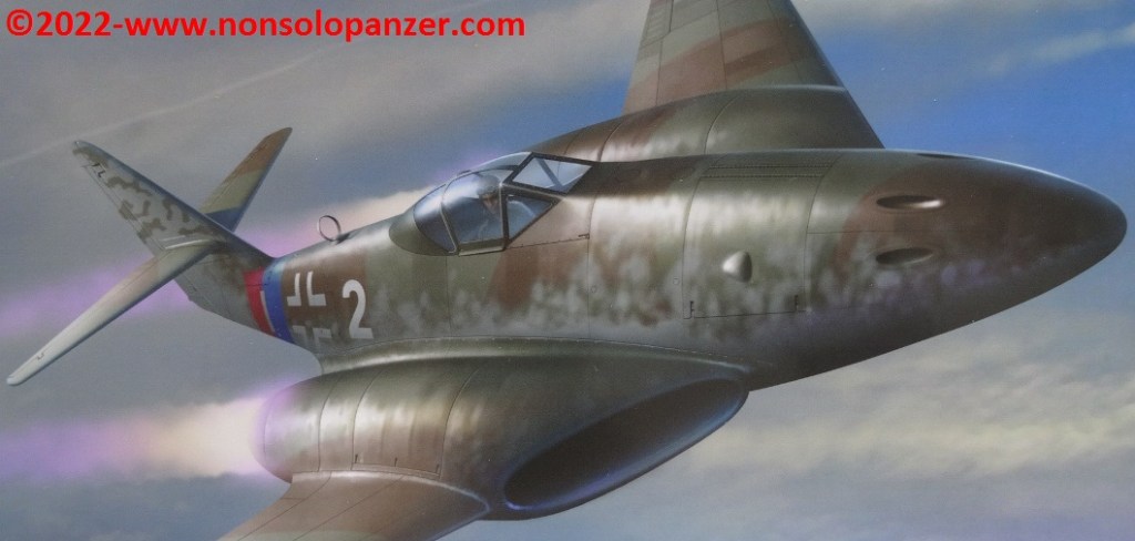 The Messerschmitt Me-262 was the first jet-powered fighter to be used in combat. Equipped with two Jumo 004s, the Me-262 entered service in 1944 with the Luftwaffe. In that time, the Me-262 was a technologically advanced aircraft and strongly influenced the postwar designs of the victorious nations. The technological leap was such that the efficiency of the fighter itself was compromised. Luftwaffe tookalmost a year to realize that the Me-262 was not an ordinary fighter equipped with innovative engines but an entirely new aircraft that imposed an operational use specifically developed on the basis of its particular characteristics. As the armament rush during a world conflict dictates, German designers began to conceive improved versions of the Me-262 as soon as the development of it was substantially completed. One of the most interesting designs is certainly the Me-262 HG III. The entire HG (Hochgeschwindigkeit) series was aimed at increasing the performance of the Me-262 both aerodynamically and in terms of range. The HG III included radical structural changes such as a more compact canopy, V-shaped tail rudders and wings entirely redesigned so as to contain the jet turbines within them and have a 45-degree pitch (as opposed to 18.5 degrees on the standard Me-262). The result of all these interventions is an aggressive and singular looking fighter as well demonstrated by the kit recently marketed by Amusing Hobby.