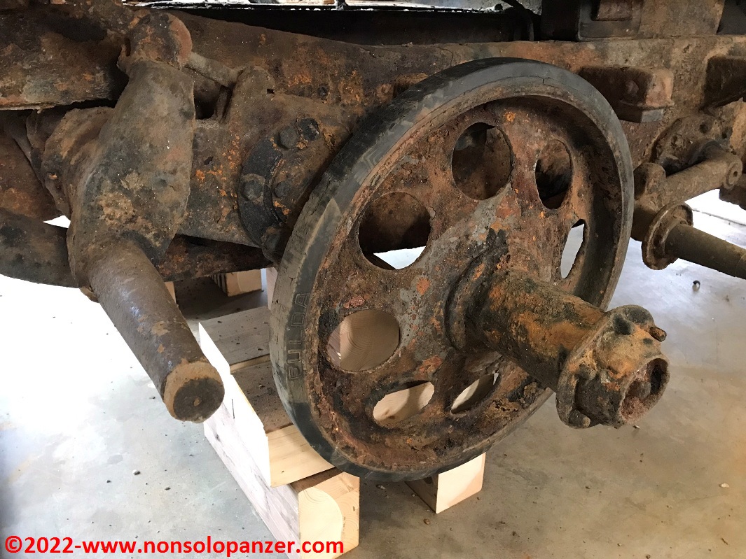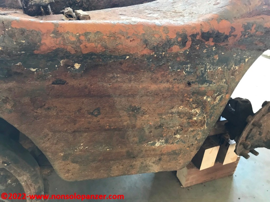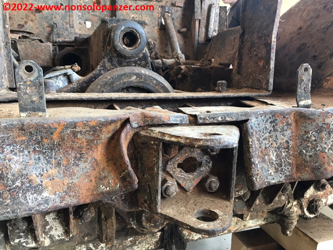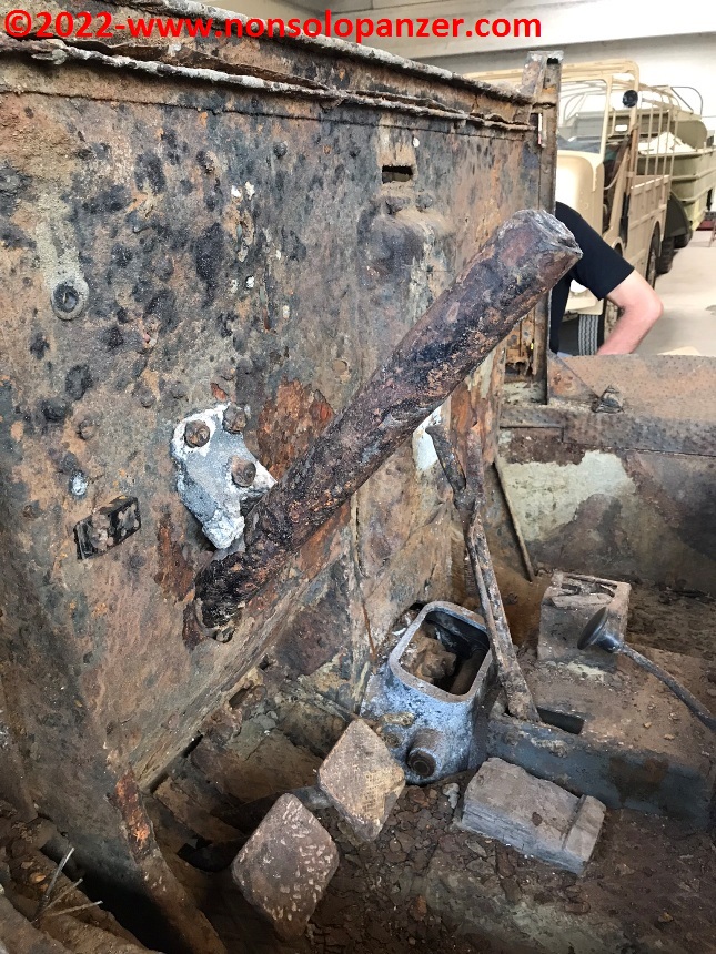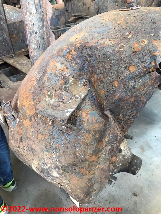 Only the extraordinary meagre conditions that plagued the Po River this year made it possible to recover the vehicle. The state of this Sd.Kfz.11 may appear terrible to the unobservant eye but, as any enthusiast knows, it is an exceptional recovery since the half-track, as if in a sort of time bubble, has remained untouched since 1945, preserving parts of the original camouflage and insignia as well as components of the electrical instruments. Not only that, the suspension still works as do the track link joints. The vehicle also retained part of its load, including the stock recoil brake of the LeFH 18 gun pulled by the half-track.