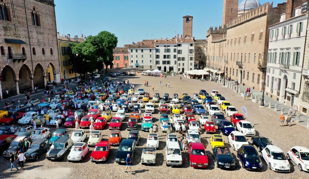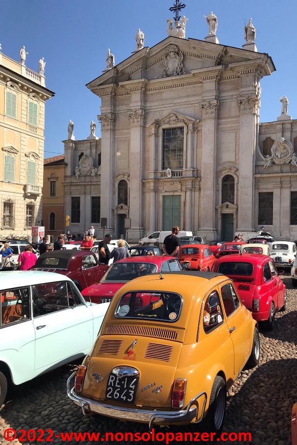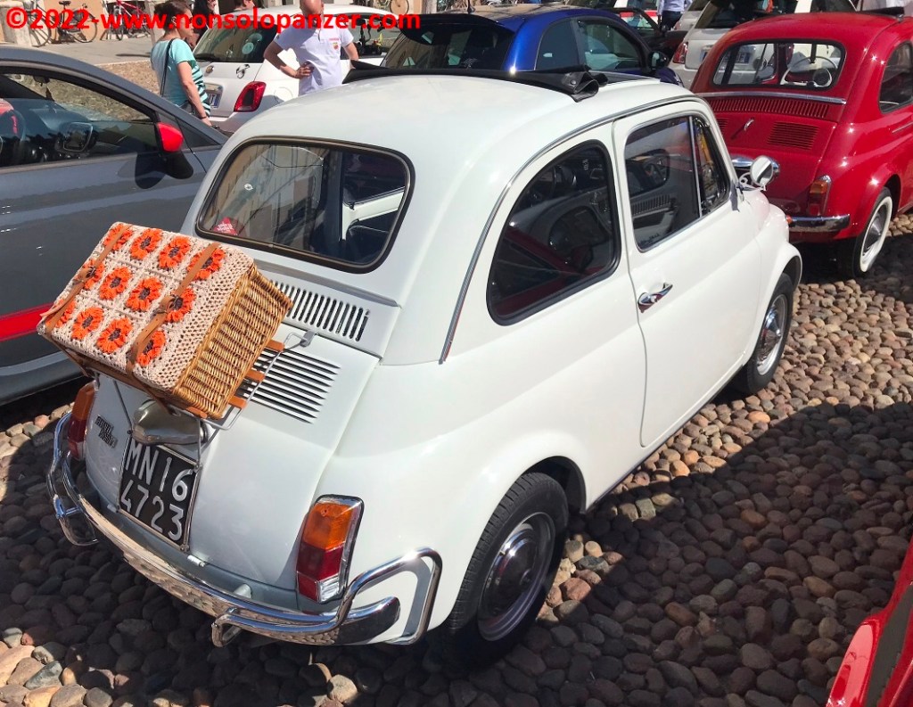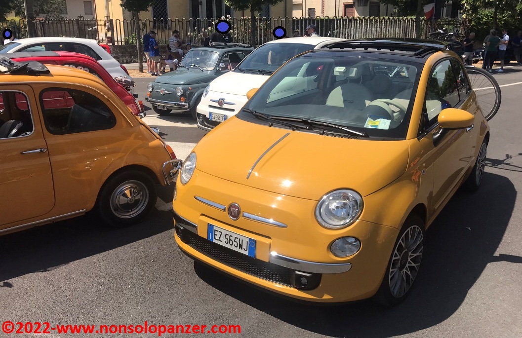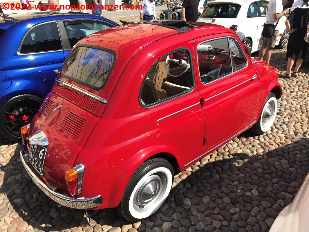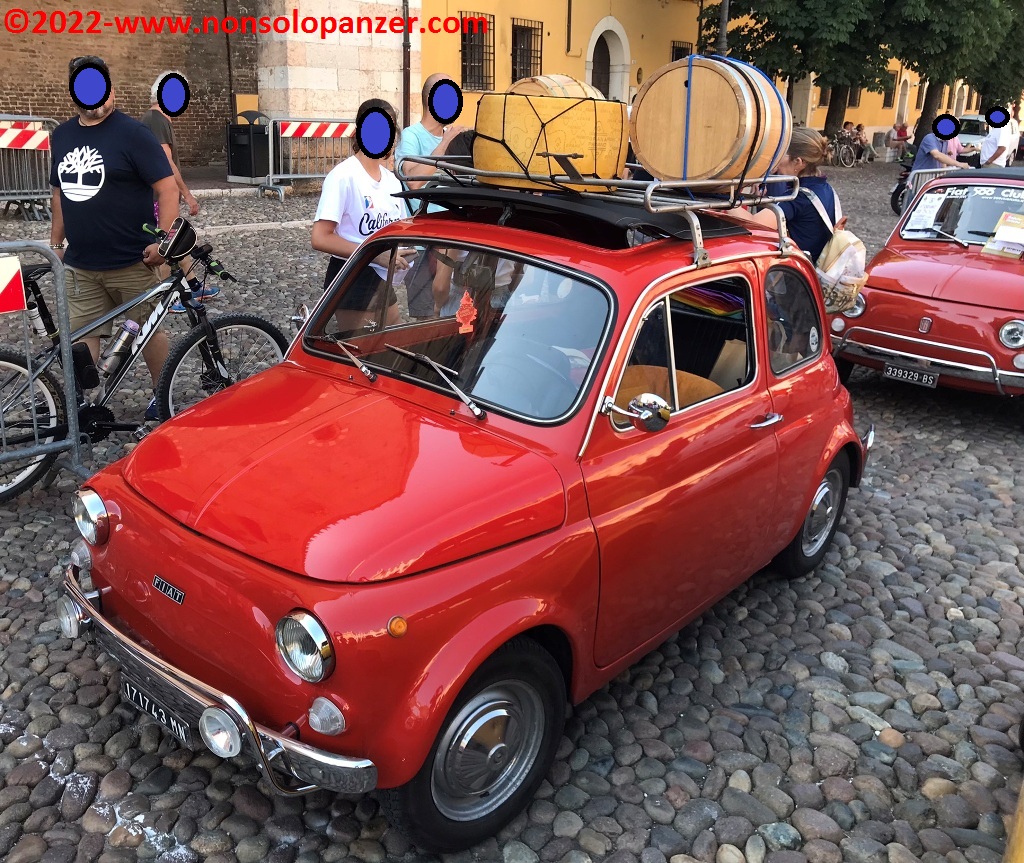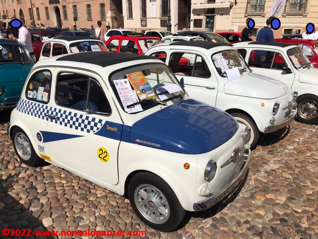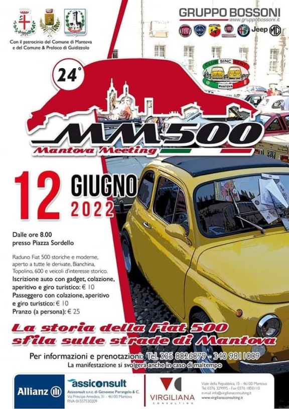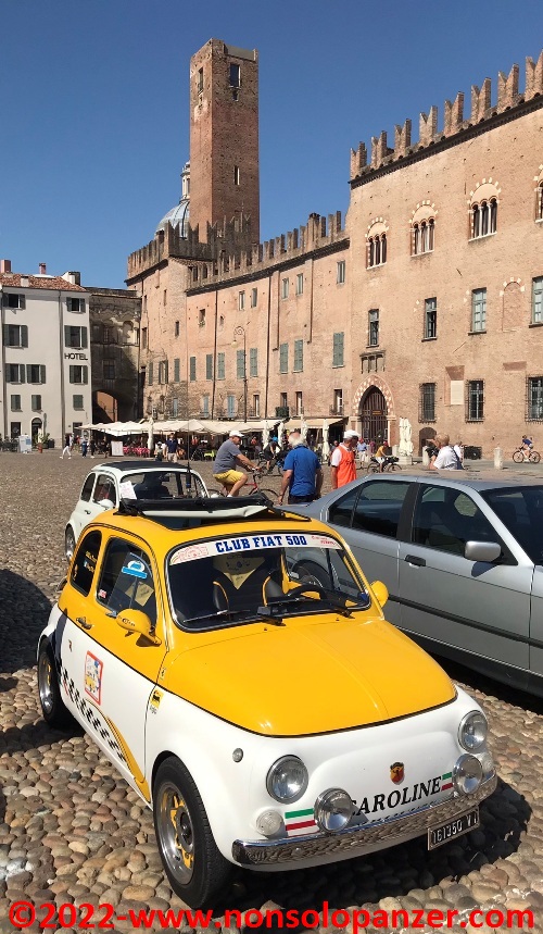 The 18th “Raduno delle Palme” in San Benedetto Po was an opportunity to talk about how 2022 represented a small personal revolution. I have, in fact, purchased a spectacular Opel “Mokka” and, after seven years of an honourable career, put my beloved and faithful pastel sun yellow Fiat 500 to rest. It is certainly uneconomical, but it proved very useful between July and November when a violent hailstorm seriously damaged the “Mokka”. Due to the long wait for delivery of the replacement windscreen and two weeks of work on the carbody, my beautiful “Chicca” was essential for managing daily and professional commitments. That said, the Fiat 500 is first and foremost destined for goliardic activities such as attending meetings. After the 18th “Raduno delle Palme”, I took part in the “Mantova Meeting 500” held on 12 June 2022.