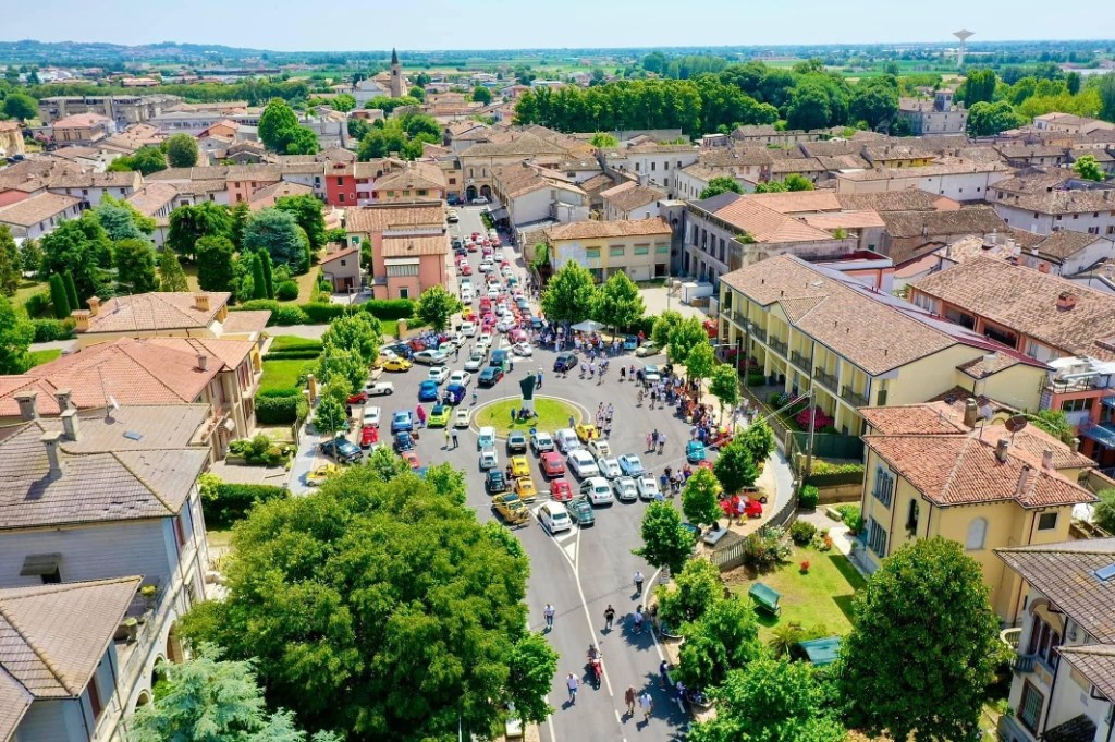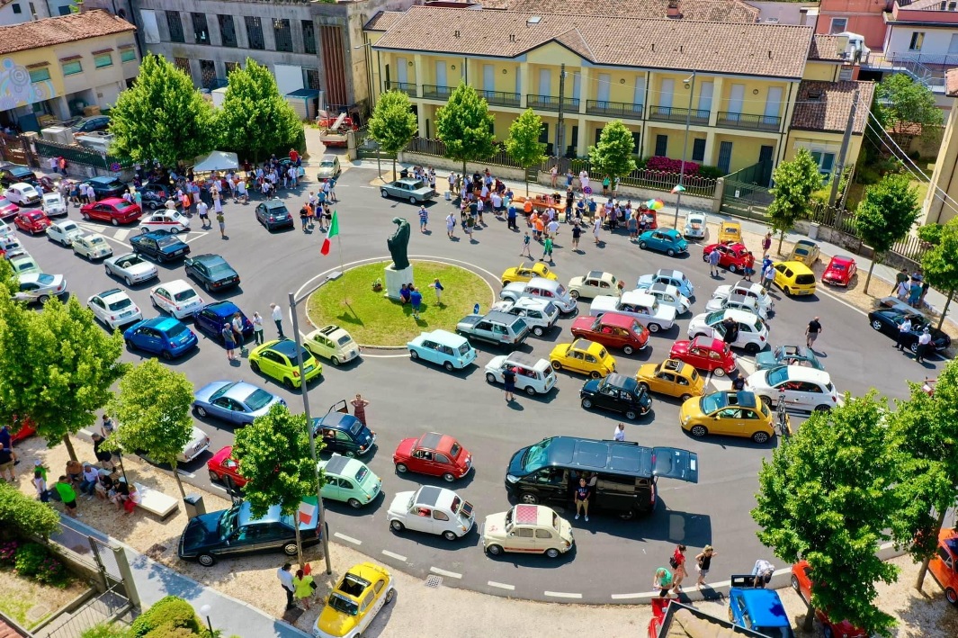 Leaving Mantua in a long procession that attracted everyone’s attention, the caravan of Fiat 500s and historic cars of all kinds reached the town of Guidizzolo for refreshments and the ritual photos.