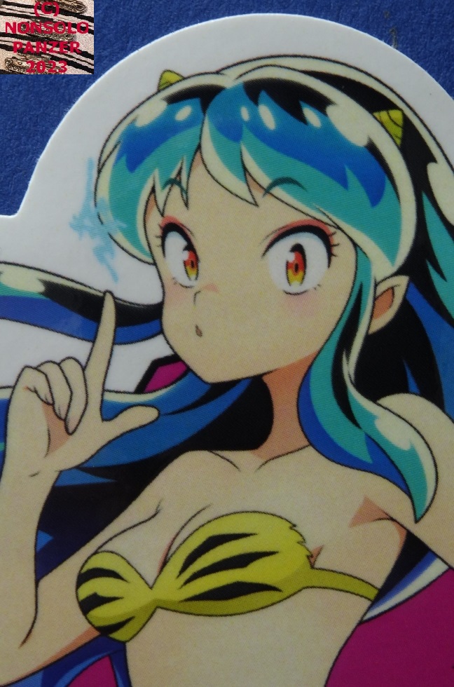 L’industria dell’entertainment nipponico ha ovviamente sfruttato la nuova serie animata come pretesto per inondare il mercato di ogni sorta di prodotto che potesse allettare vecchi e nuovi appassionati di “Urusei Yatsura”. Io non potevo sottrarmi a questo perverso meccanismo commerciale e, infatti, mi sono procurato vari gadget fra cui questo Urusei Yatsura Lum Sticker.