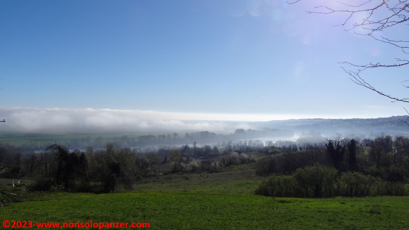 Having parked the car not far from Casale Monferrato, we straddled the bikes and rode along a short stretch of the Po. The view of the great river was very impressive thanks to the morning light and the humidity rising from the water despite the water crisis due to the persistent drought.