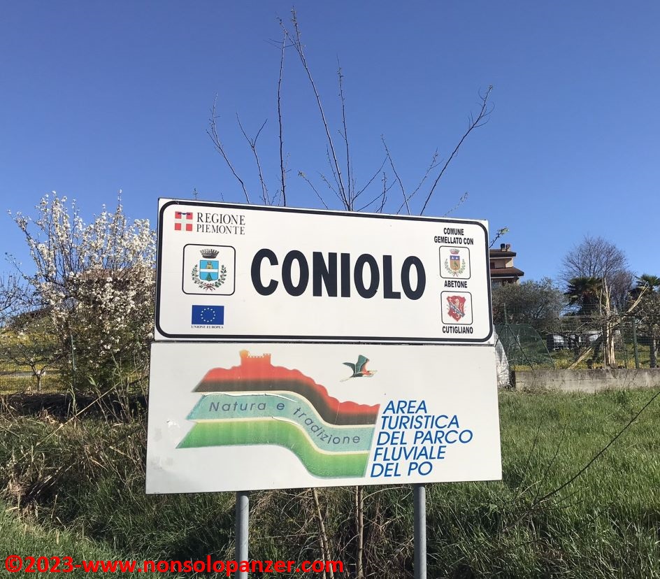 Lasciata la sponda del fiume, siamo saliti fino a Coniolo da cui abbiamo potuto ammirare uno splendido panorama. Coniolo, infatti, è collocato proprio lungo lo spartiacque che divide la pianura padana dalle colline del Monferrato. Dal paese si può, quindi, ammirare tutta pianura sottostante, il fiume Po e l’arco alpino in lontananza.