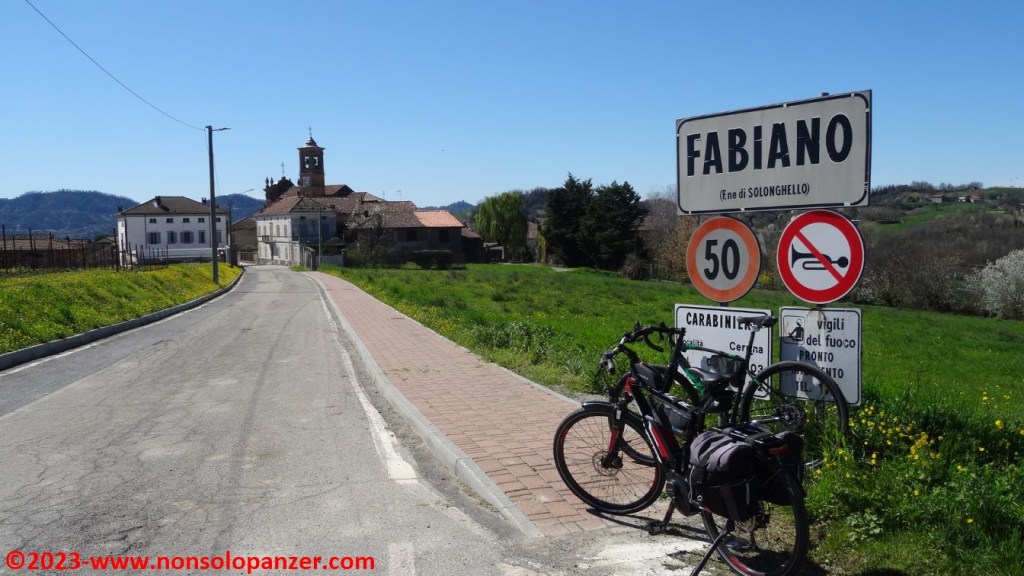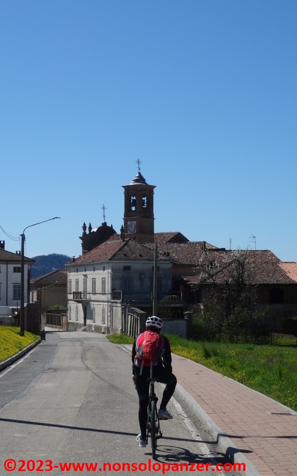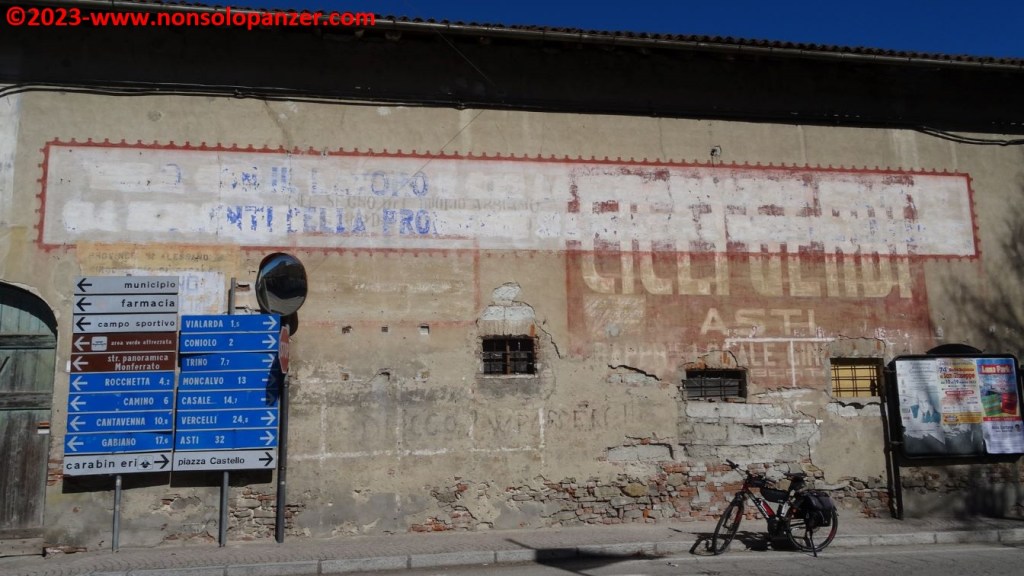 Usciti dal bistrot, siamo entrati nell’ambiente più tipico del Monferrato in cui ampi avvallamenti di alternano a colline su cui sorgono borghi, castelli e ville padronali. Il paesaggio è ingentilito da colture di ogni tipo, fra cui spiccano grandi vigneti sui versanti più soleggiati delle colline. Fabiano e Solonghello sono due borghi che abbiamo attraversato in bici e che ben rappresentano un territorio che merita di essere riscoperto da un turismo sostenibile ed in grado di valorizzare le eccellenze locali.