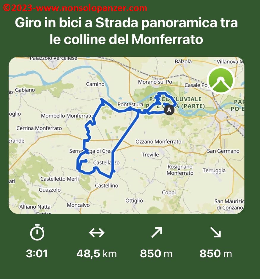In total, we covered about fifty kilometers, completing a ring that allowed us to fully appreciate the beauty of Monferrato and enjoy a sunny spring day on our bikes. We could not have asked for anything more and nothing better to mark the success of an initiative long planned and repeatedly postponed. I sincerely hope that there will soon be another opportunity to mount our bikes together.