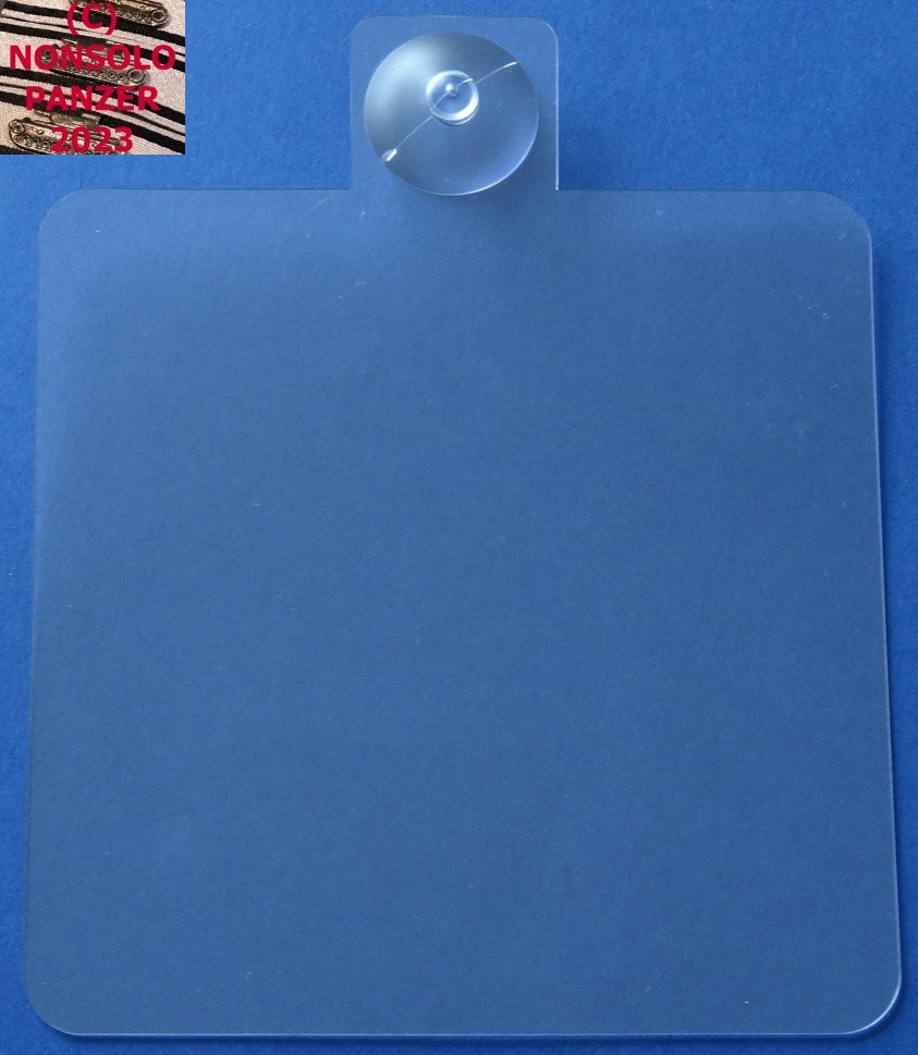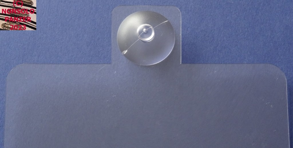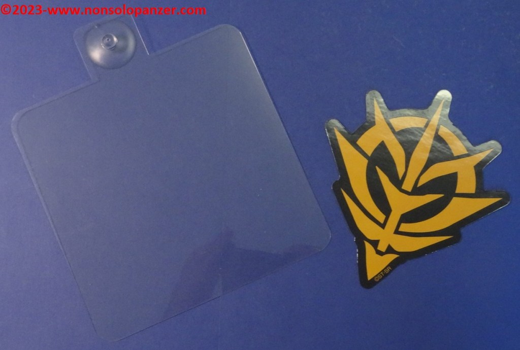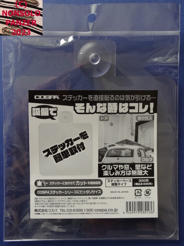 I bought the sticker together with the Sticker Base Suction Cup Type, a useful accessory that Cospa makes available to perfectionists like me who appreciate being able to display a sticker without attaching it to a specific surface. The Sticker Base Suction Cup Type consists of a transparent plastic sheet with a suction cup. With this support, you can protect the sticker from the weather, hang it wherever you wish and replace it at will. The gimmick is simple but ingenious.