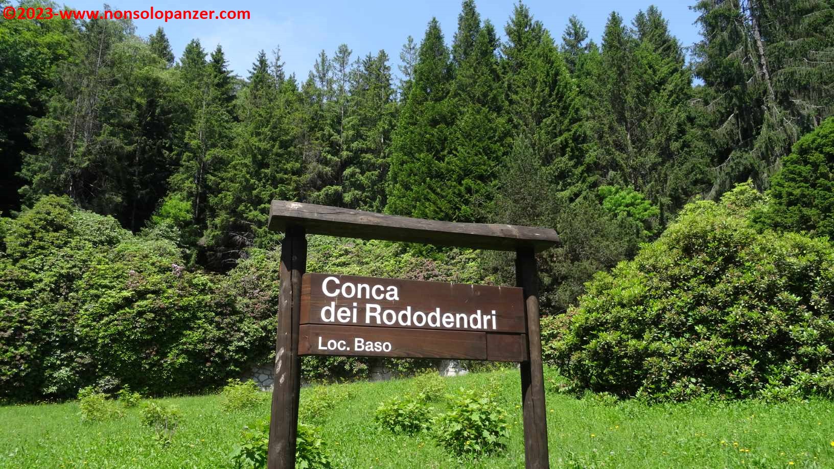 Superata l’Alpe Margosio si comincia a scendere costeggiando la Conca dei Rododendri che, voluta da Ermenegildo Zegna, ancora oggi regala fioriture certamente magnifiche nel mese di maggio. La discesa prosegue fino a Trivero dove sorge lo storico Lanificio Ermenegildo Zegna e si conclude la panoramica a lui intitolata.