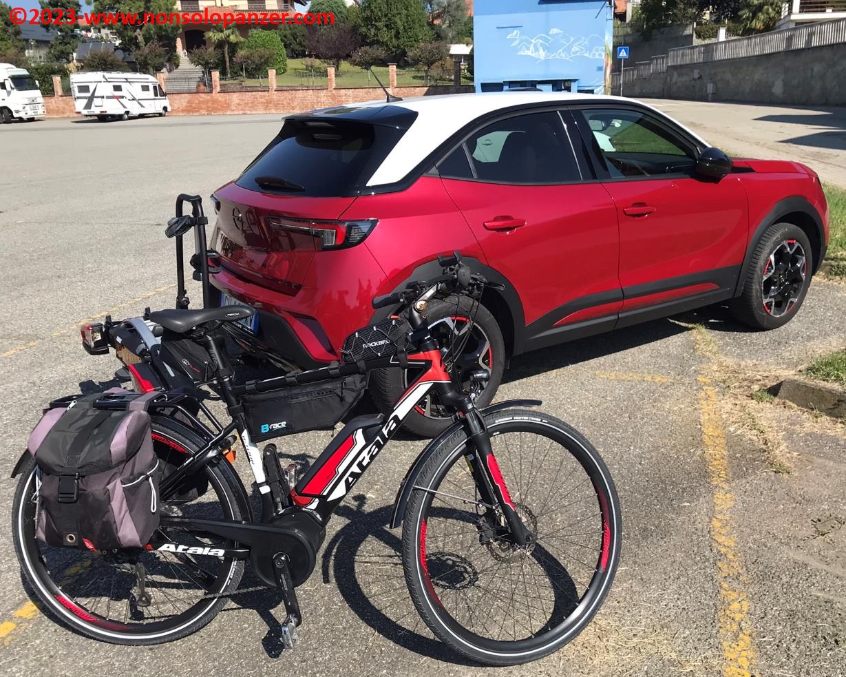 La mattina di sabato, 9 settembre, siamo partiti da casa con la potente Opel “Mokka” a cui avevo montato il porta biciclette Thule con due Atala a pedalata assistita. A metà mattina siamo arrivati a Caluso dove abbiamo parcheggiato in un’ampia area di sosta ed abbiamo scaricato le bici.