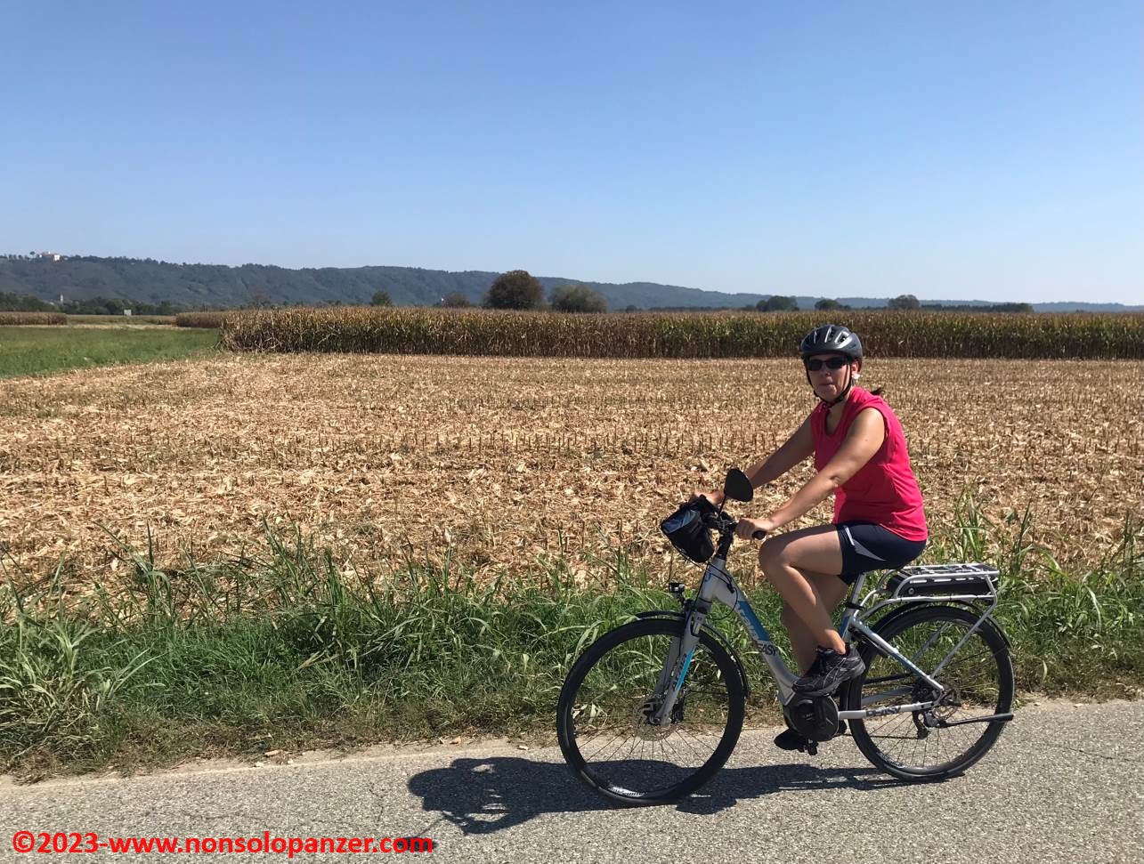 On the morning of Saturday, 9 September, we left home with the powerful Opel “Mokka” to which I had mounted the Thule bike rack with two pedal-assisted Atalas. Mid-morning we arrived in Caluso where we parked in a large parking area and unloaded the bikes.