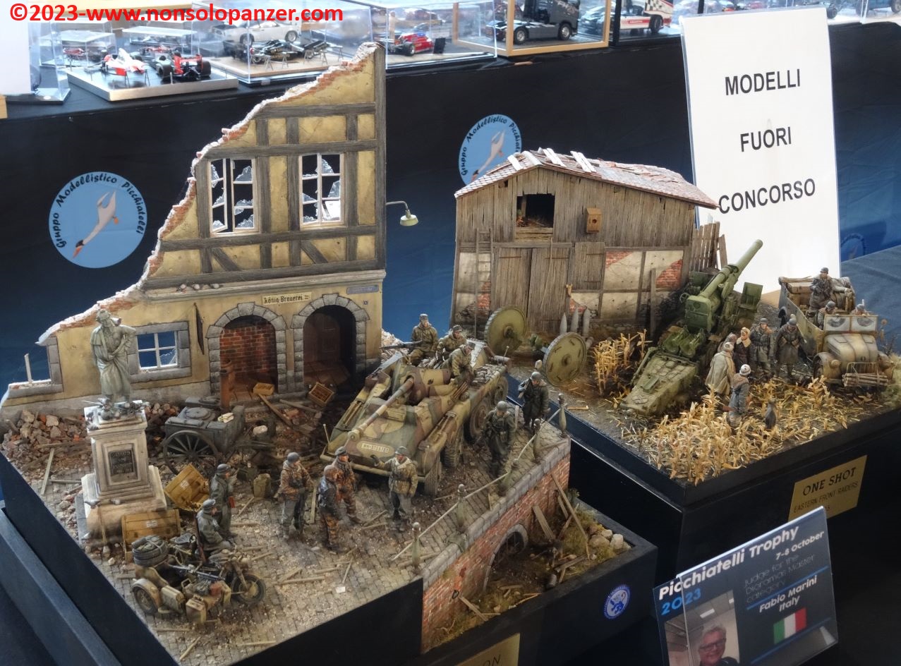 The Picchiatelli Trophy 2023 was held on 7 and 8 October at the municipal sports hall. I was very surprised by the large number of participants and the international breadth of the event. In fact, the competition saw the participation of numerous foreign clubs and also benefited from the presence of foreign judges who always bring a different and appreciable point of view when judging. The models were numerous in all categories and the quality level decidedly medium/high. For my part, being my first participation, I pulled out all the aces I had at my disposal by participating in the Picchiatelli Trophy 2023 with the Japan Figure “Yuki Mori“, the fighter “He-162 D“, the bust “Abdel Rashid” and the VF-1J “S-Fast Pack“.