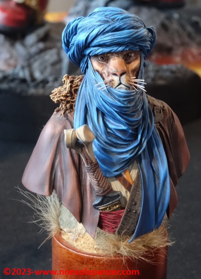 Nel corso della premiazione ho ricevuto un premio davvero inaspettato. “Abdel Rashid”, il busto di uomo leone vestito da Tuareg, ha avuto l’apprezzamento di Suzume Shun, una bravissima ragazza che disegna e stampa i suoi personaggi fantasy. Mentre passeggiavo nell’area commerciale della fiera, mi ero soffermato a lungo allo stand di Suzume apprezzando in particolare la miniatura “Working Ant”. Potete ben immaginare la mia sorpresa quando ho scoperto che Suzume aveva deciso di premiare il mio busto proprio con quell’opera. Vorrei, quindi, ringraziare anche in questa sede Suzume, augurandomi di essere all’altezza delle aspettative pittoriche che ripone in me.