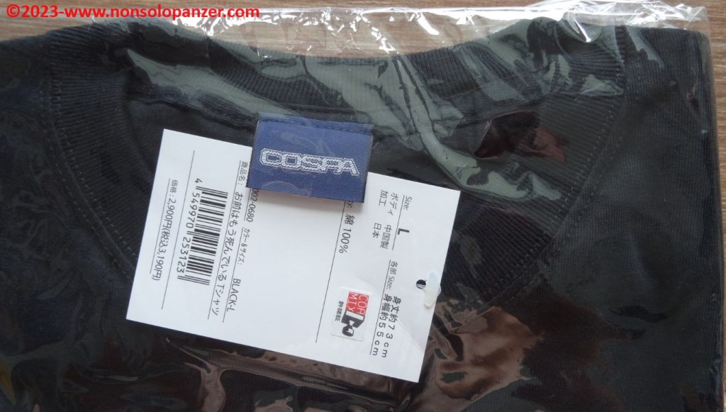 Come tutte le T-shirt prodotte da Cospa, anche questa maglietta è di ottima qualità come dimostrano la precisione del taglio e delle cuciture nonché, cosa essenziale, il dettaglio della stampa riprodotta. Concludo con un plauso ad Hobby Link Japan, l’ottimo sito di e-commerce da tempo divenuto mio principale punto di riferimento per gli acquisti nipponici.