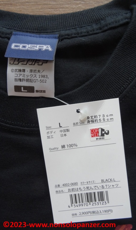 Like all the T-shirts produced by Cospa, this shirt is of excellent quality as demonstrated by the precision of the cut and stitching as well as, what is essential, the detail of the print reproduced. I conclude with an applause to Hobby Link Japan, the excellent e-commerce site that has long become my main point of reference for Japanese purchases.