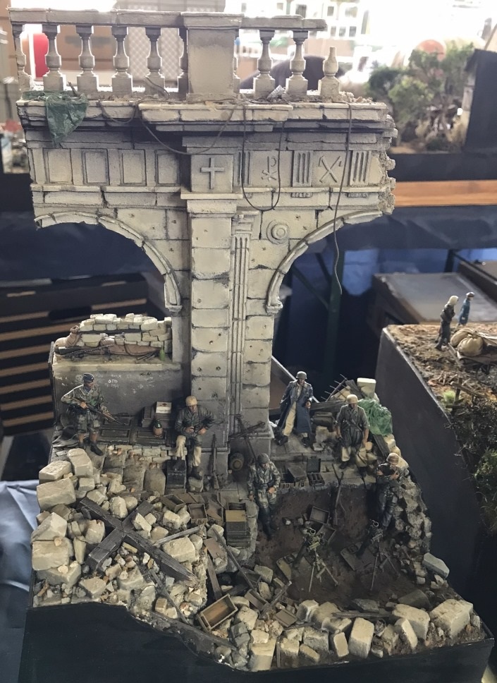 Around two o’clock in the afternoon, we visited the exhibition while waiting for the awards ceremony scheduled for 4: 30pm. There were many models in the competition, all of good if not excellent quality. The figurine section was particularly rich, with notable subjects both historical and fantasy and a large presence of characters from movies and cartoons. Somewhat underwhelming was the aviation sector, on the other hand, 1/35 scale military models and dioramas were really very nice.