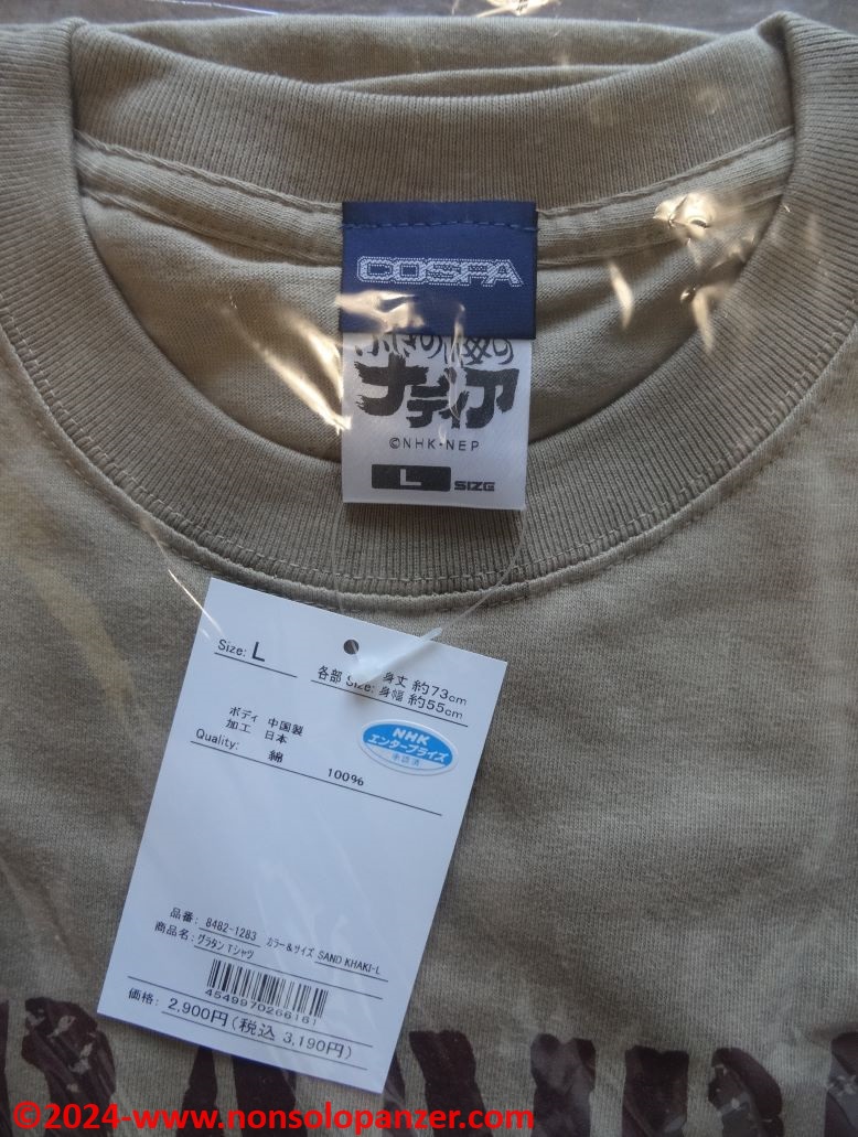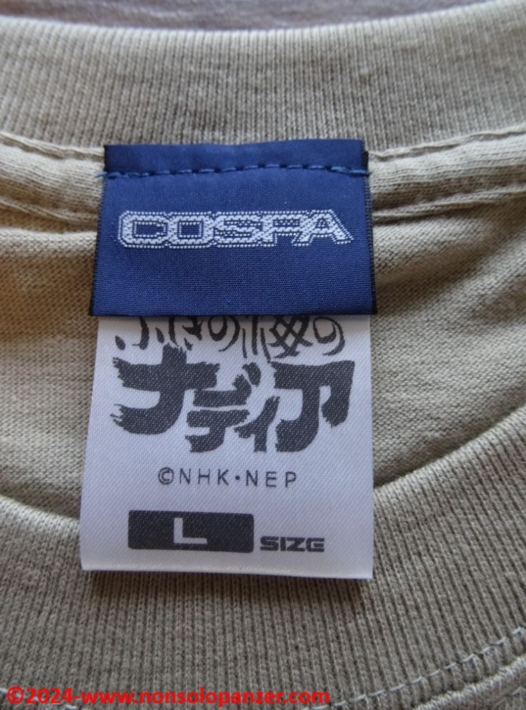 Sempre commercializzata da Cospa, società giapponese molto attiva nella vendita di gadget legati Anime e Manga, questa bella maglietta è dedicata al “Gratan”, veicolo che insieme al “N-Nautilus” è fra i più iconici della serie “Nadia: The Secret of Blue Water”.