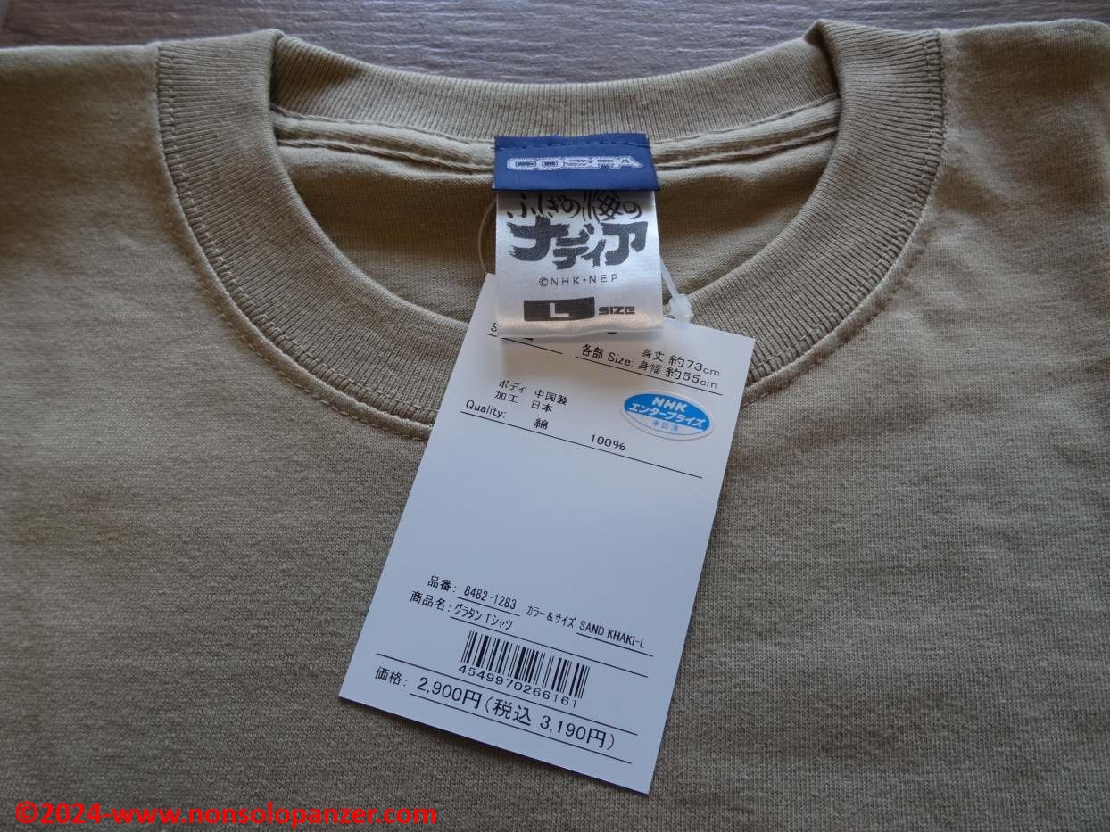 In the last few weeks I have written for this blog many articles dedicated to merchandise related to the animated series “Nadia: The Secret of Blue Water“. There are two main reasons: the first is that the work in question is one of my favorite Anime; the second is related to the thirtieth anniversary of the broadcast of the series on Japanese television. The event was celebrated by the exhibition “Nadia: The Secret of Blue Water 30th Anniversary Exhibitn” (of which I purchased the Catalogue and some Clear Files) and by the marketing of a prolific merchandising to which I certainly could not remain indifferent. After the beautiful “Nadia: The Secret of Blue Water” – Desk Calendar, the Universal Battleship “N-Nautilus” Large Tote and the unmissable Gargoyle “That’s Right” T-shirt, it’s now the turn of the “Gratan” T-shirt.