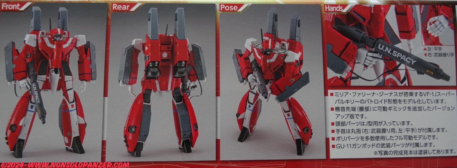 Hasegawa is a Japanese company renowned for the quality of its models. Specialized in historic aircraft, Hasegawa has been engaged for about twenty years in the creation of numerous kits dedicated to mecha taken from the “Macross“. Among them there are those dedicated to the aircraft piloted by Max and Miria, I cite as an example: VF-1 J Super Gerwalk Valkyrie “Max/Miria Type” in 1/72 scale and the VF-1 J Super Valkyrie “Max/Miria Type” with RMS-1 in 1/48 scale. The attention to detail and precision in the construction of the models make Hasegawa’s kits very popular with enthusiasts, including me. So, I can’t wait to assemble this new kit and add it to my collection!