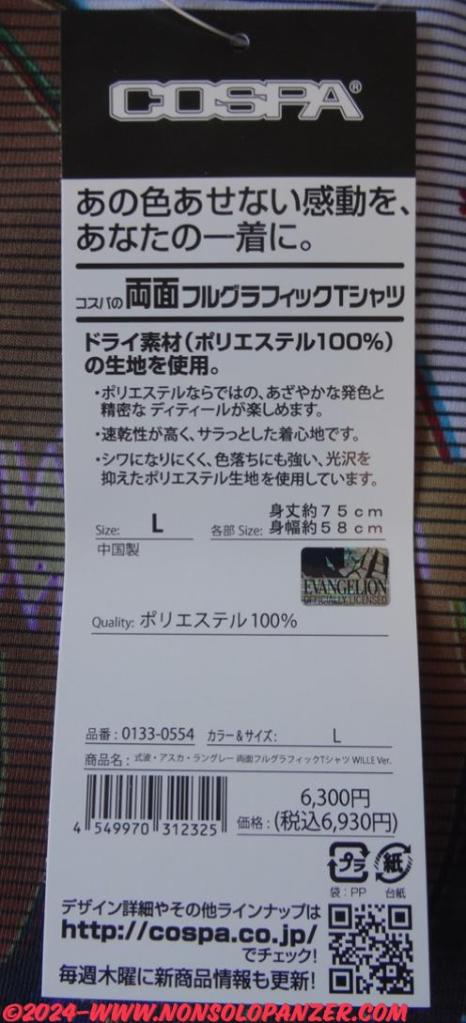 Tutto quanto sopra è racchiuso nella splendida Shikinami Asuka Langley “WILLE Ver.” Double-sided Full Graphics T-Shirt commercializzata dalla società giapponese Cospa ed acquistabile su Hobby Link Japan. Questa maglietta presenta una grafica dettagliata di Asuka in plug suit bianca sul fronte e, sul retro, il logo della WILLE sovrapposto a quello della NERV, come a cancellarlo. Realizzata in poliestere di alta qualità, la maglietta è resistente alle pieghe e allo sbiadimento, garantendo una lunga durata e un aspetto sempre impeccabile.