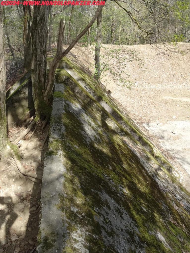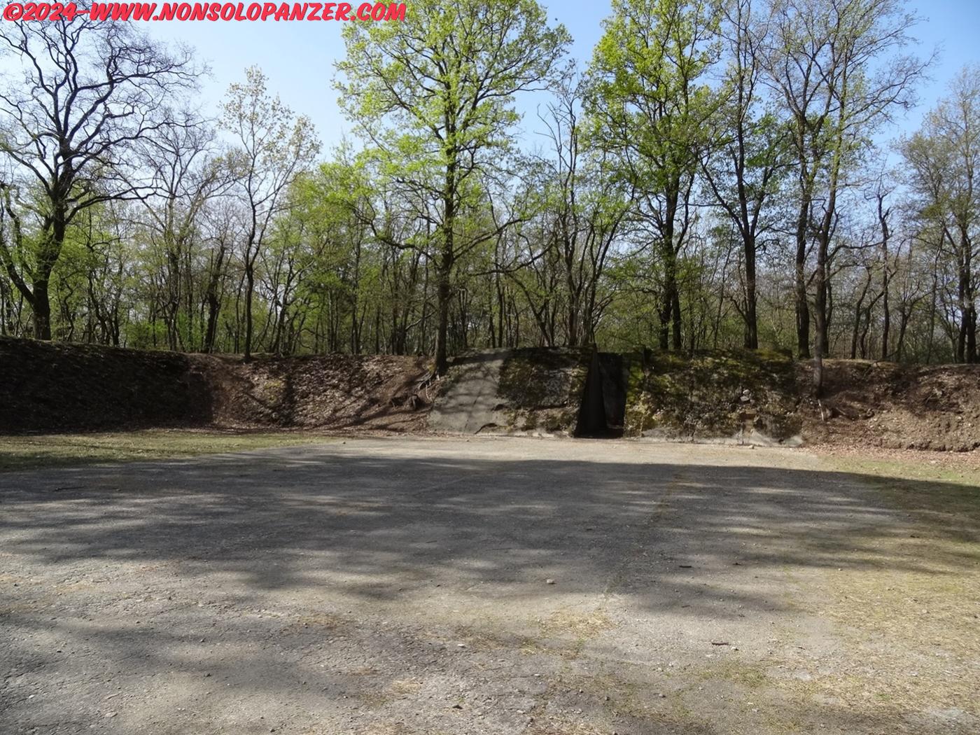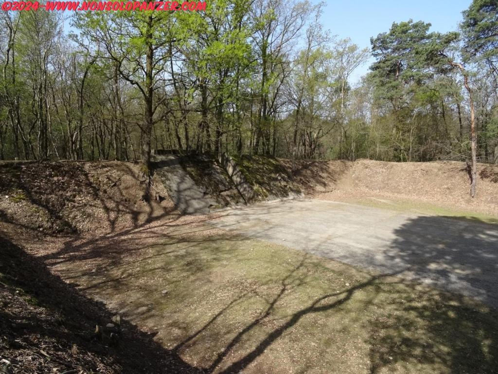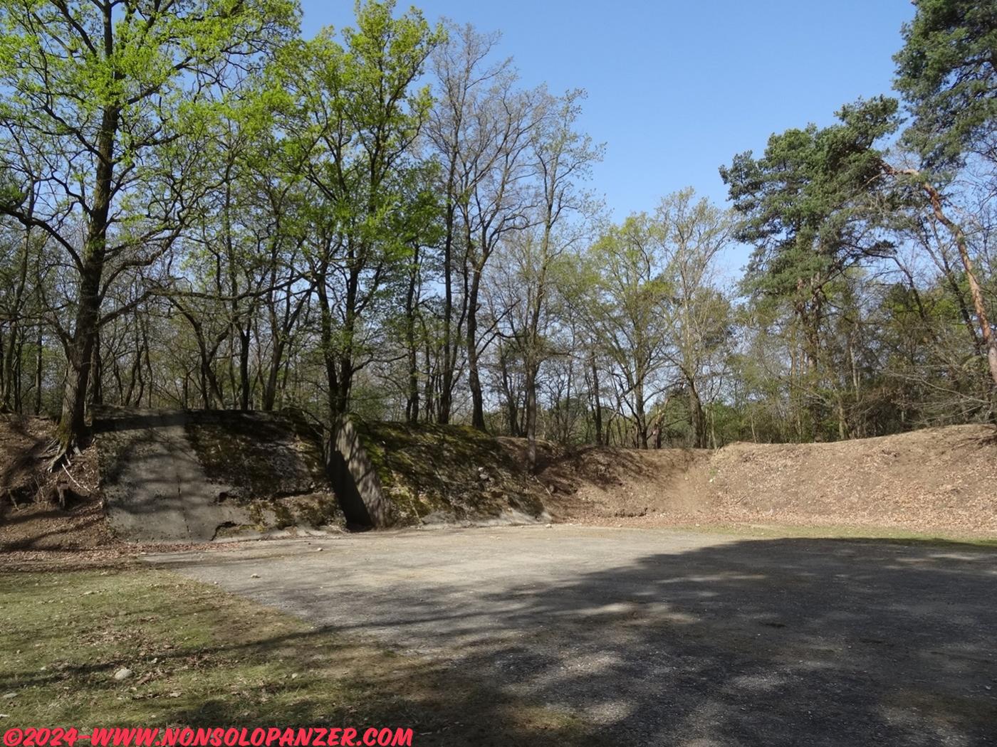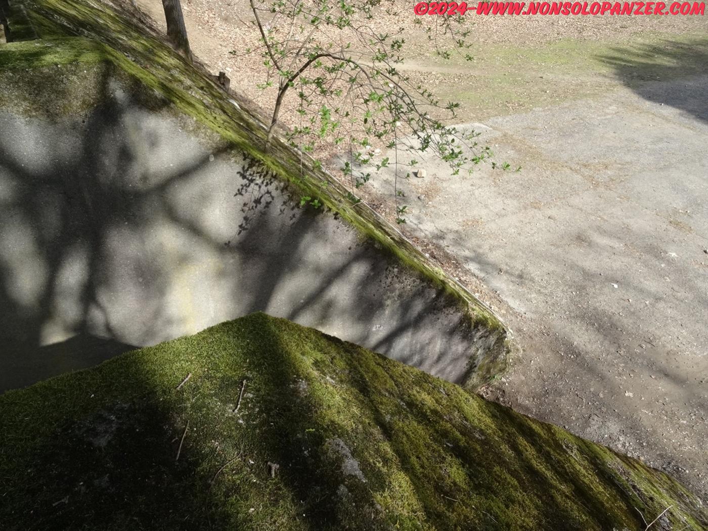 Una piazzola particolarmente ben conservata stupisce per le sue dimensioni e per l’imponente trincea paraschegge. Sul fondo di quest’ultima, una complessa struttura in cemento sembra essere stata progettata per spezzare il flusso d’aria generato dalle eliche, limitando il sollevamento di polvere.