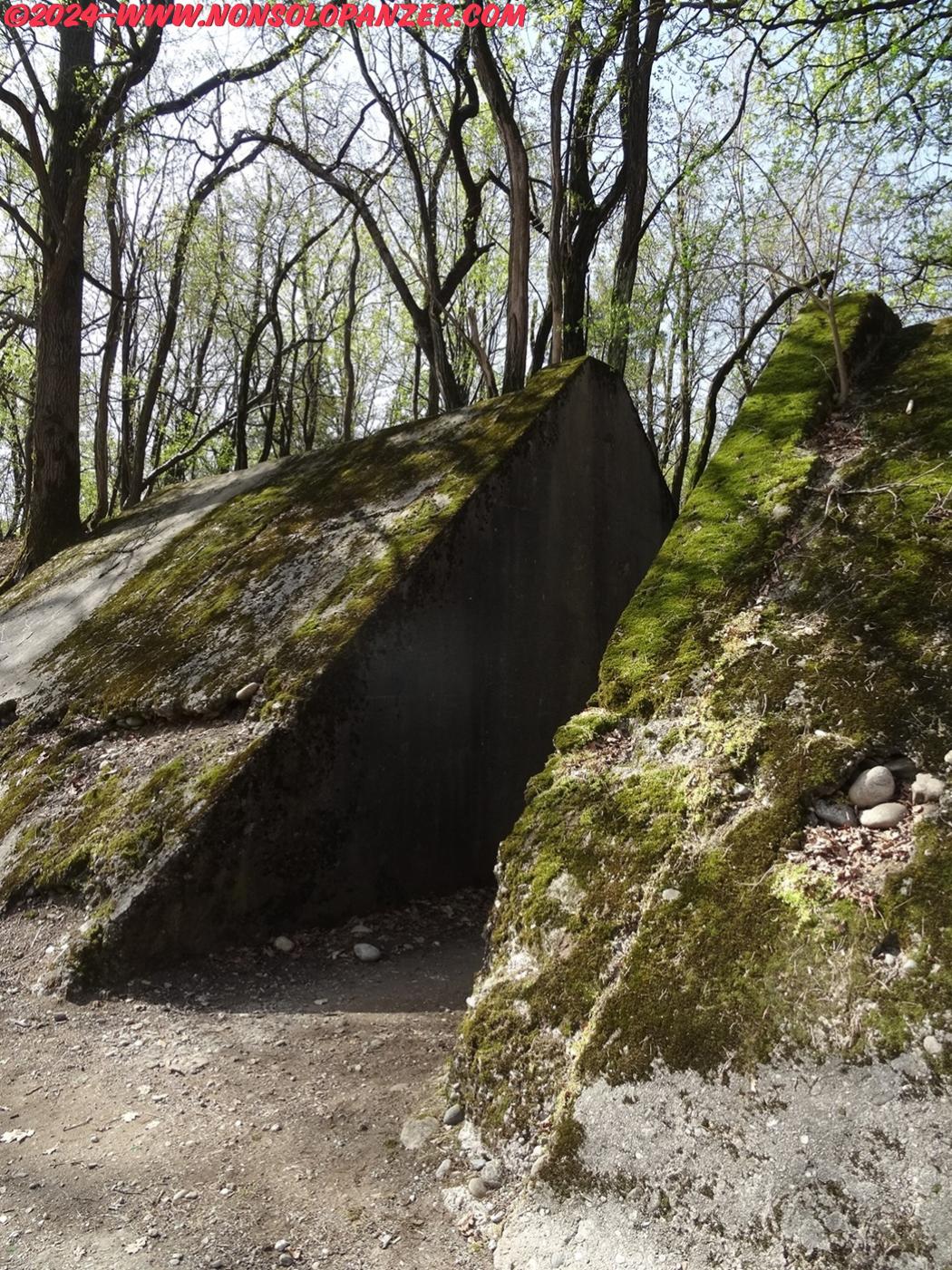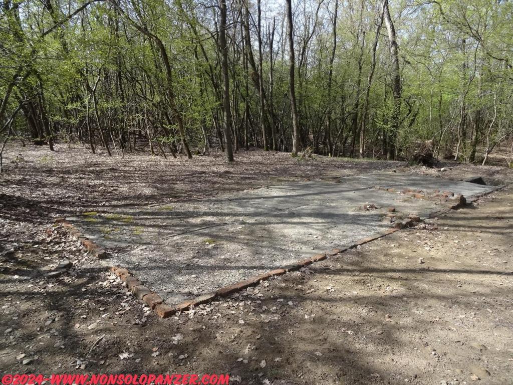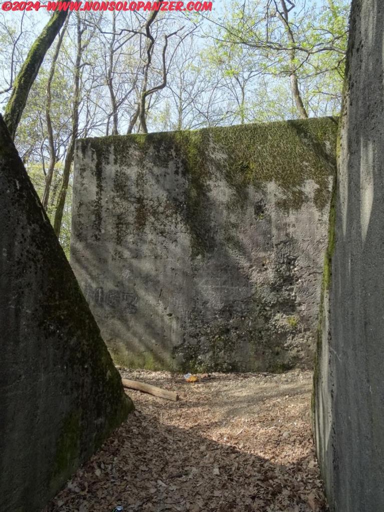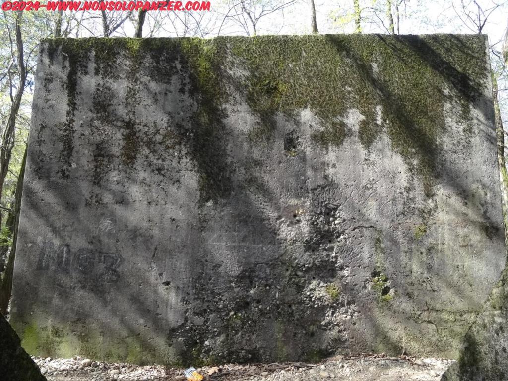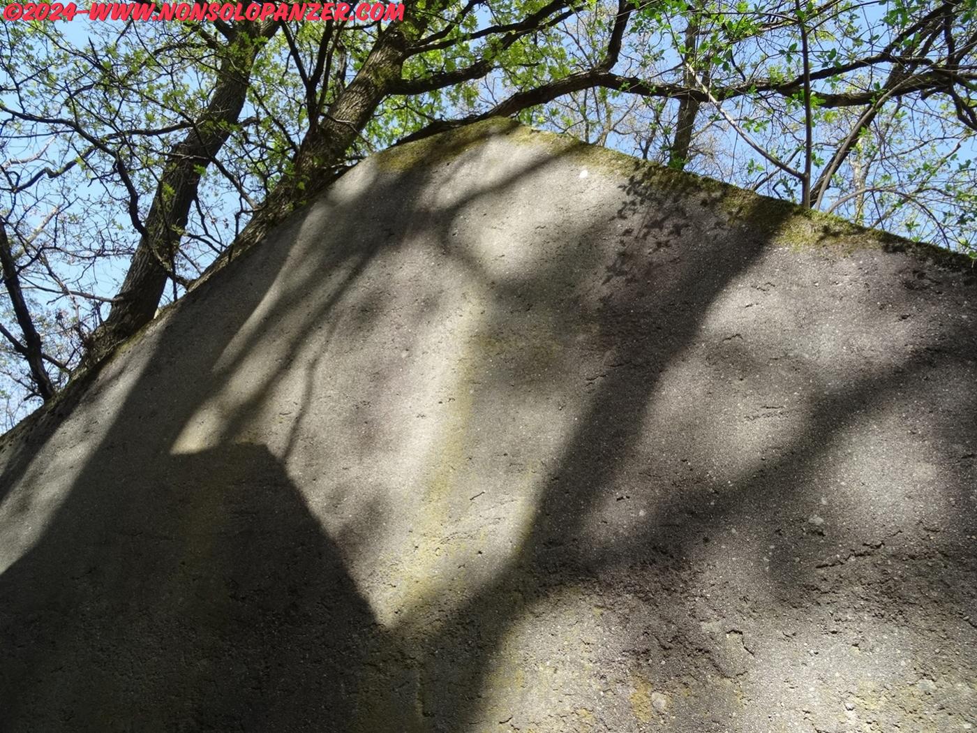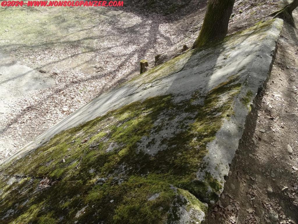 Una piazzola particolarmente ben conservata stupisce per le sue dimensioni e per l’imponente trincea paraschegge. Sul fondo di quest’ultima, una complessa struttura in cemento sembra essere stata progettata per spezzare il flusso d’aria generato dalle eliche, limitando il sollevamento di polvere.