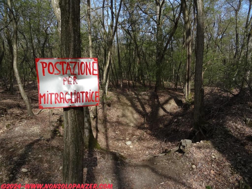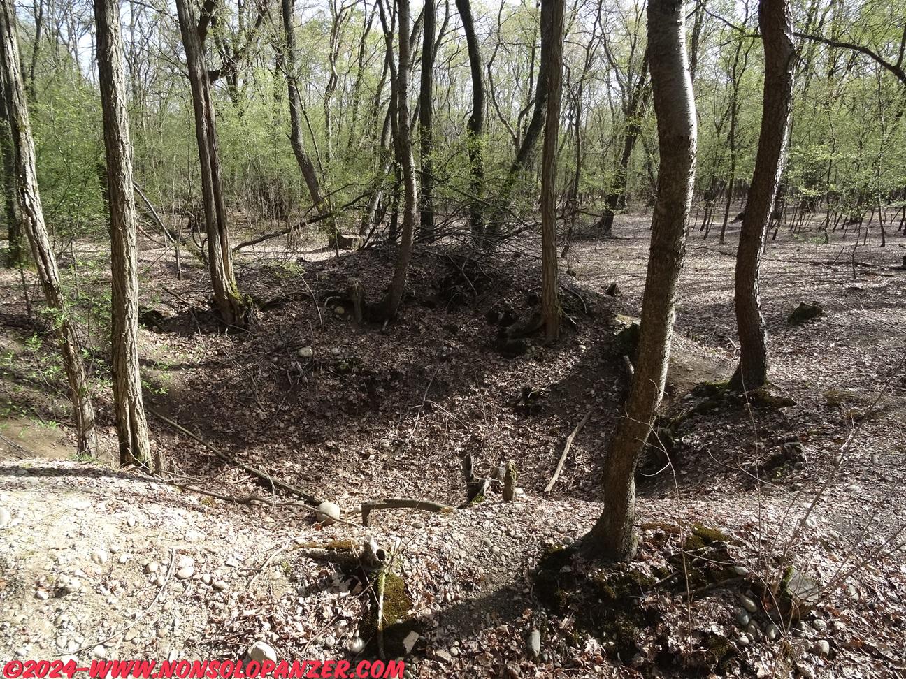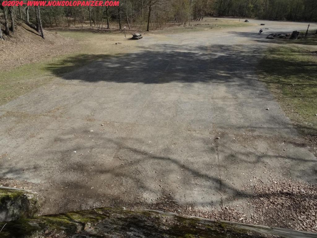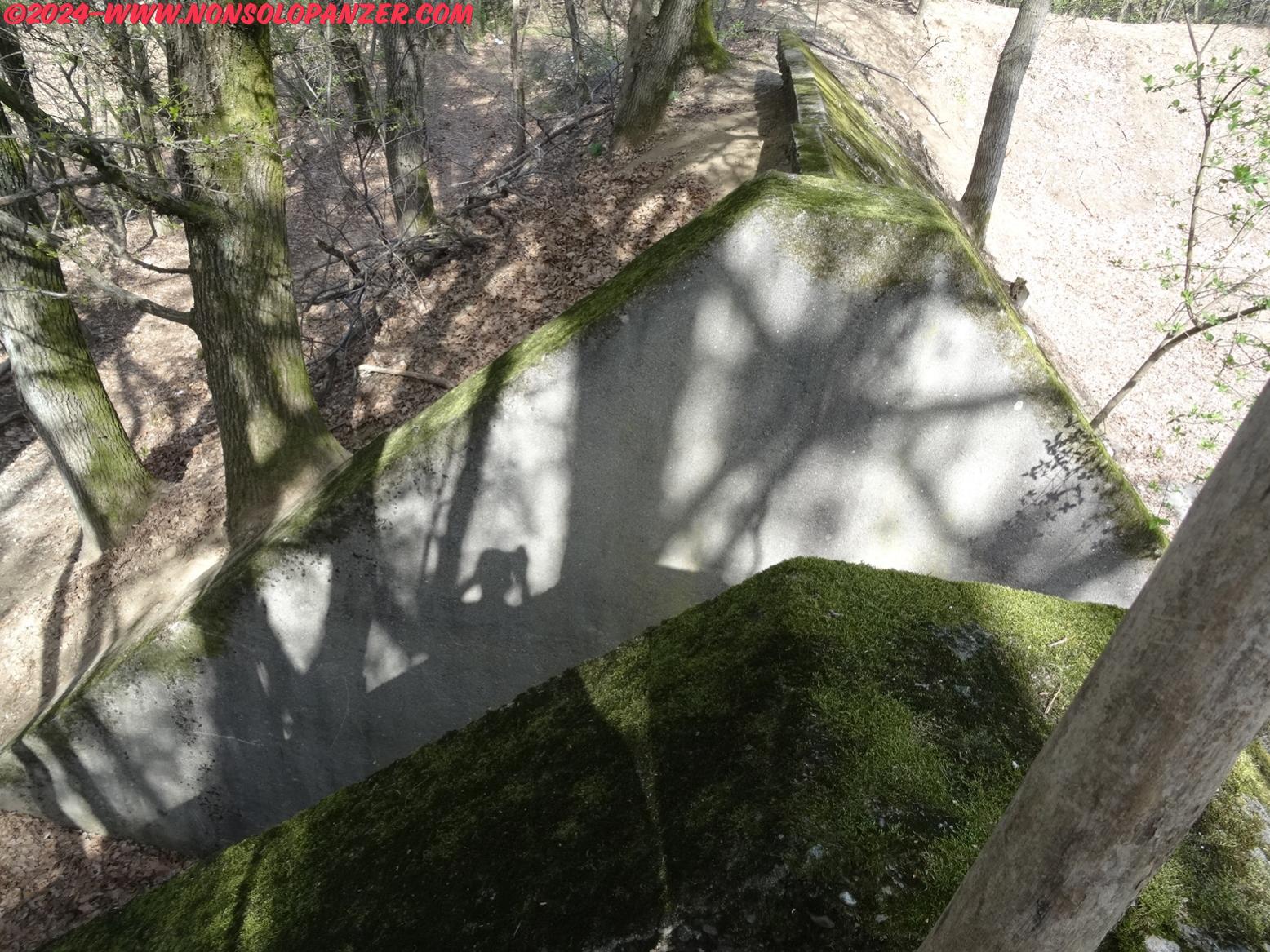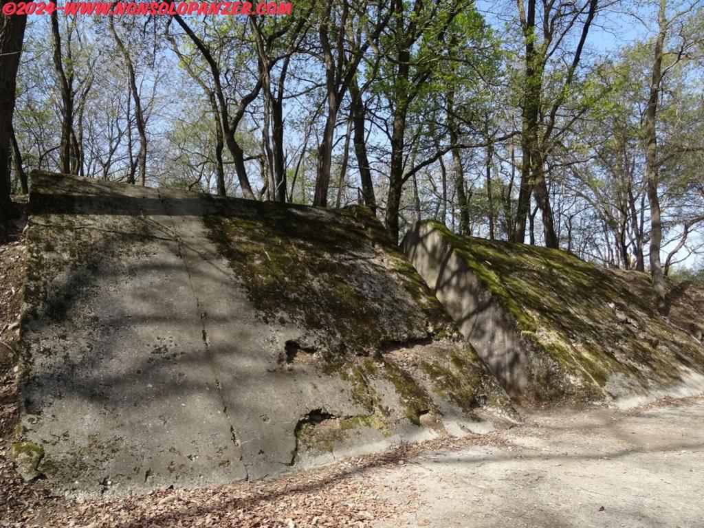 Una piazzola particolarmente ben conservata stupisce per le sue dimensioni e per l’imponente trincea paraschegge. Sul fondo di quest’ultima, una complessa struttura in cemento sembra essere stata progettata per spezzare il flusso d’aria generato dalle eliche, limitando il sollevamento di polvere.