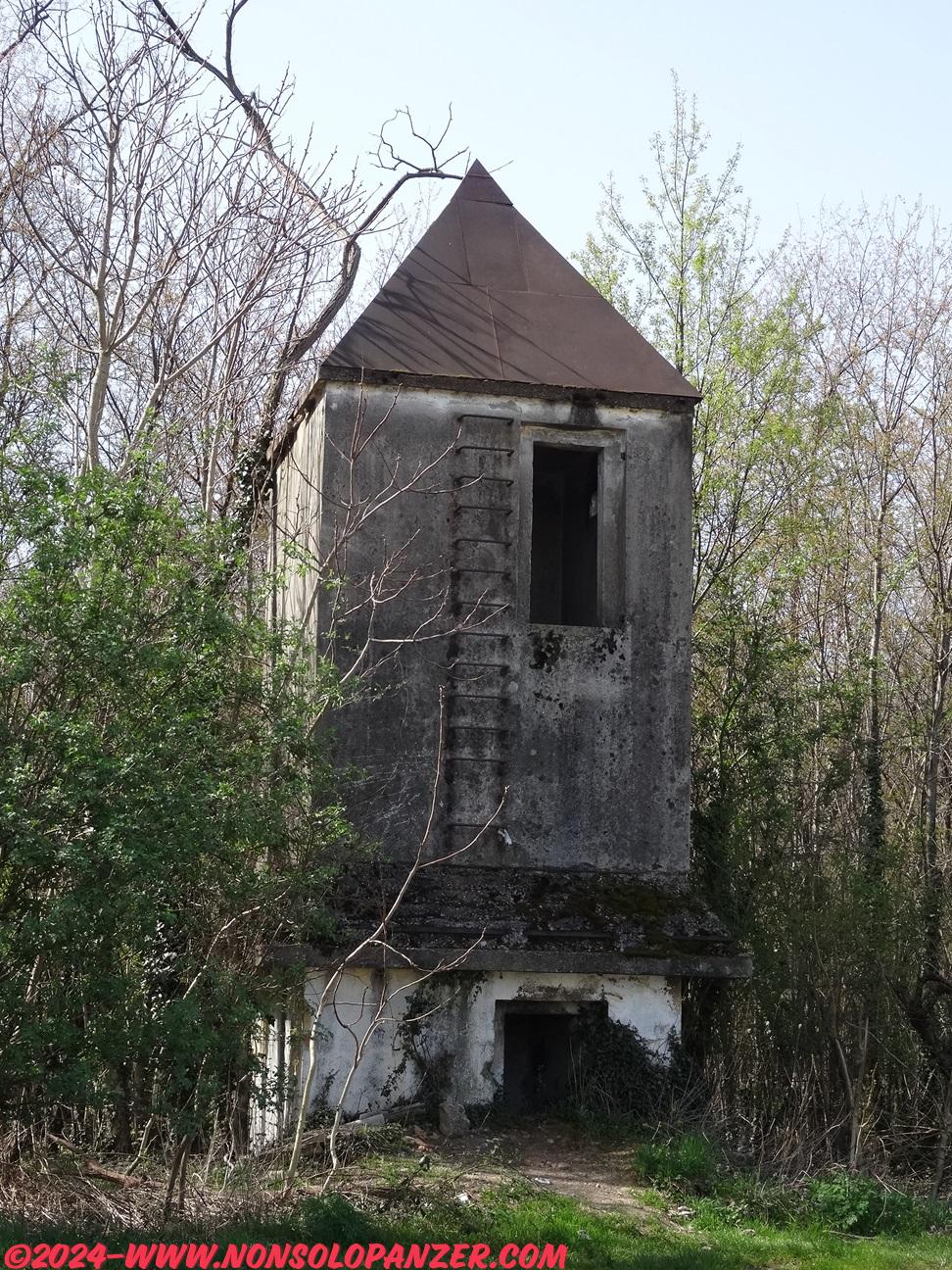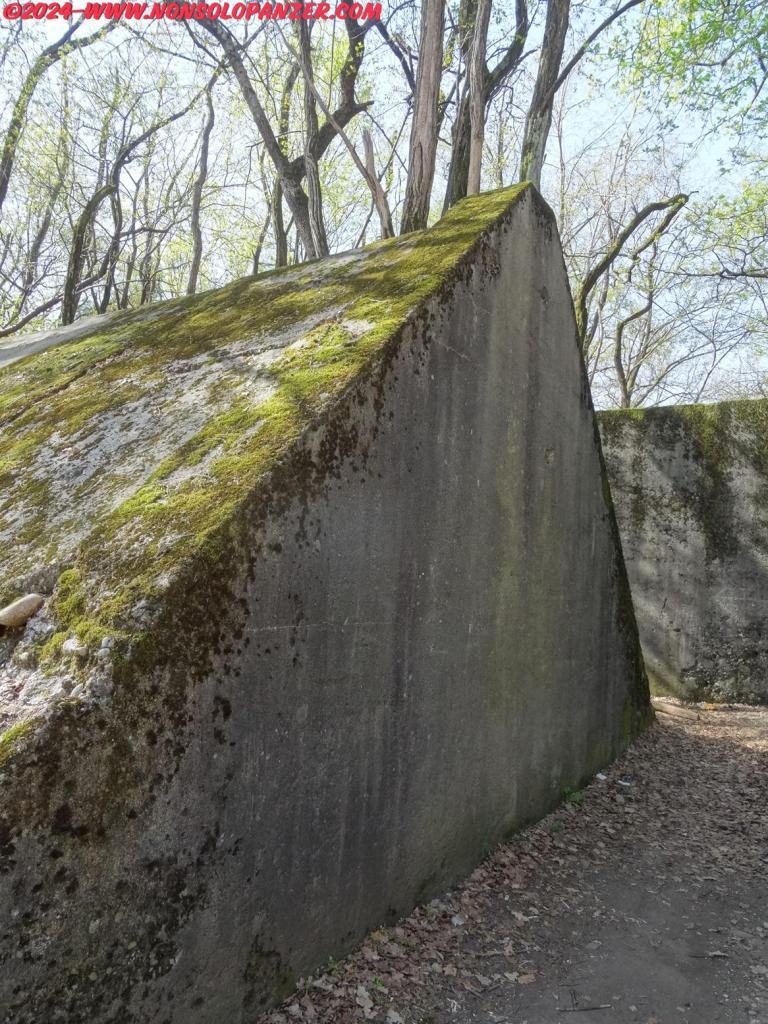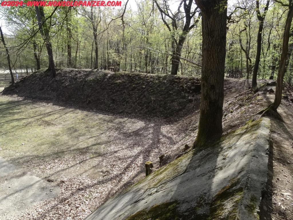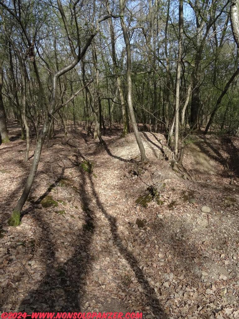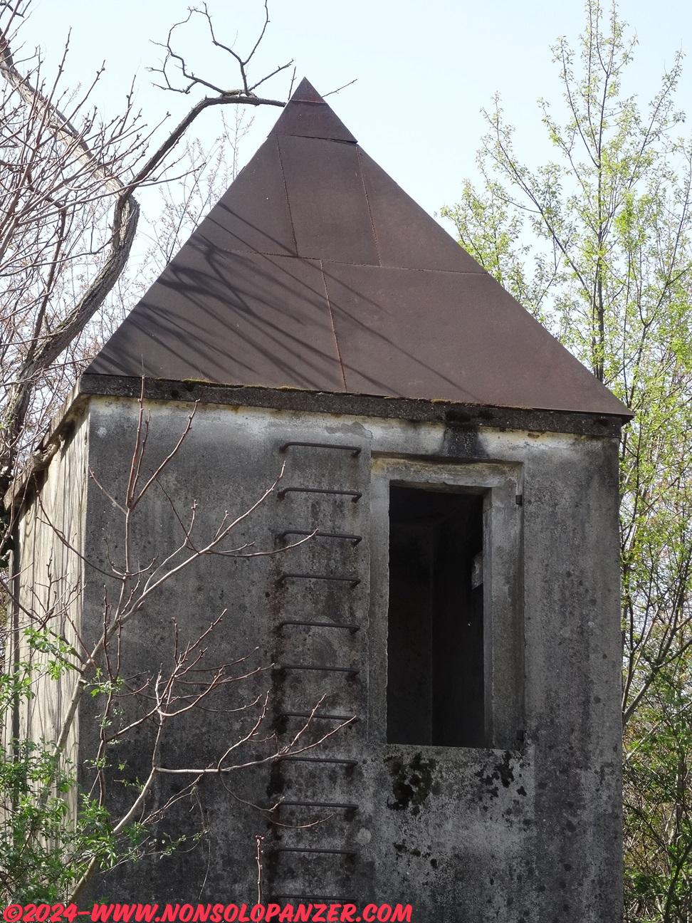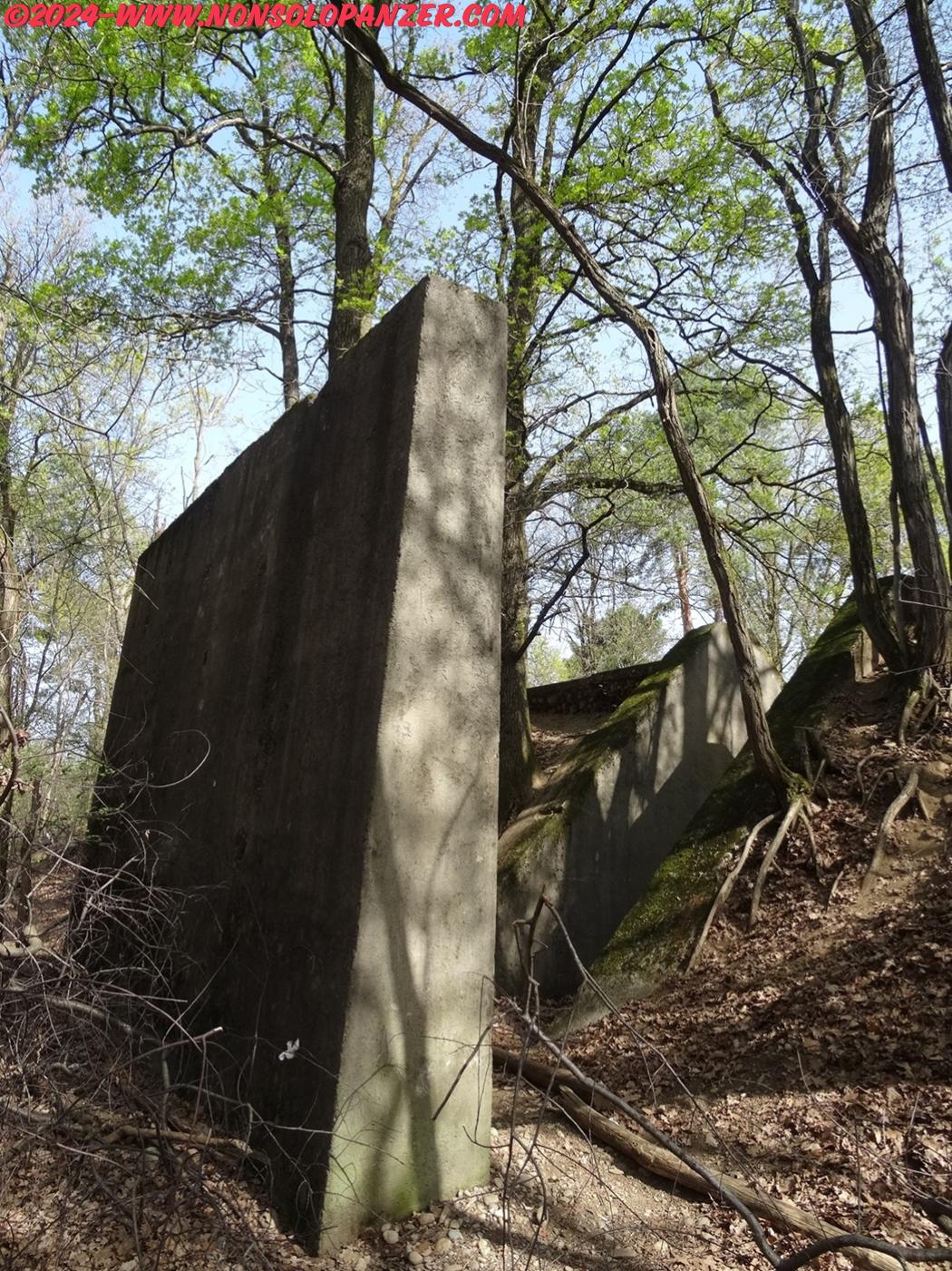 Una piazzola particolarmente ben conservata stupisce per le sue dimensioni e per l’imponente trincea paraschegge. Sul fondo di quest’ultima, una complessa struttura in cemento sembra essere stata progettata per spezzare il flusso d’aria generato dalle eliche, limitando il sollevamento di polvere.