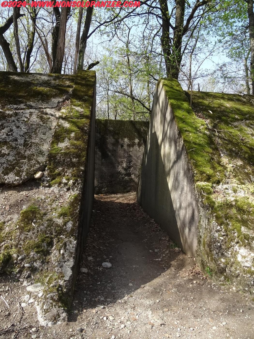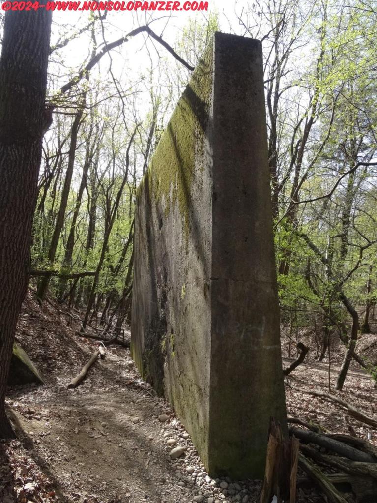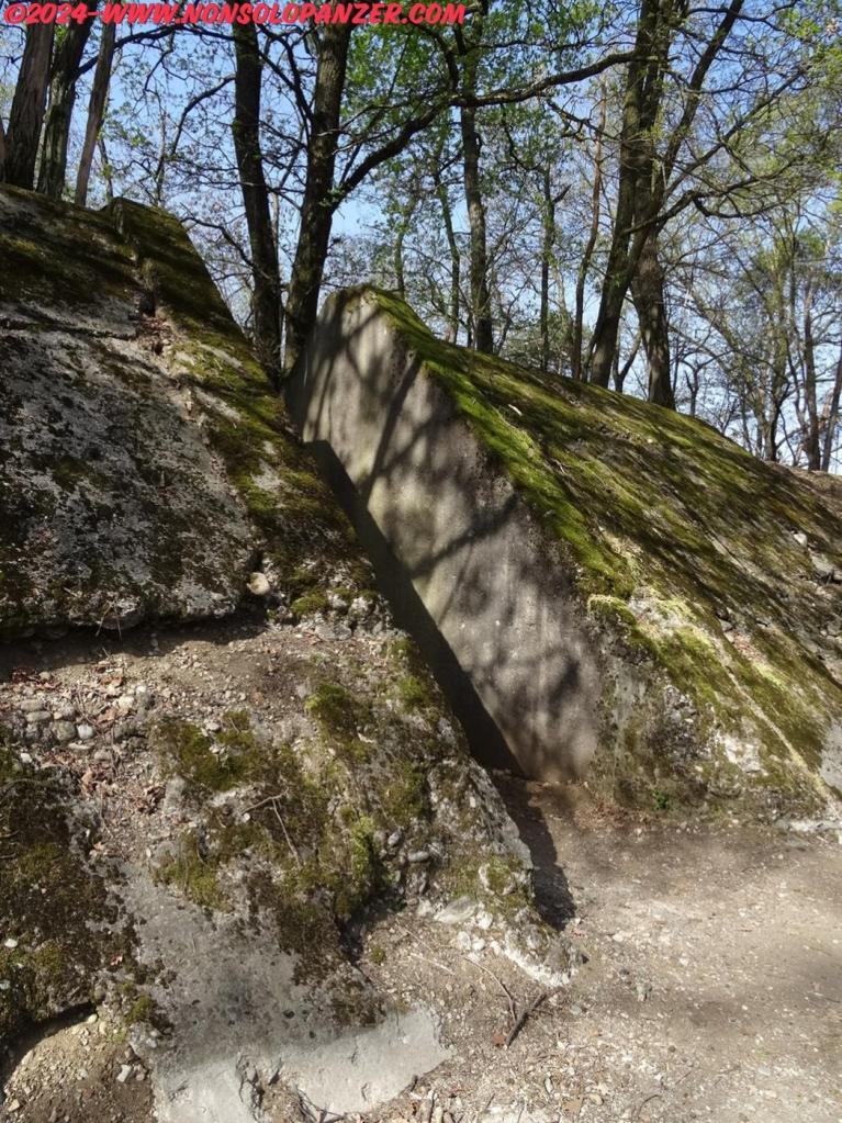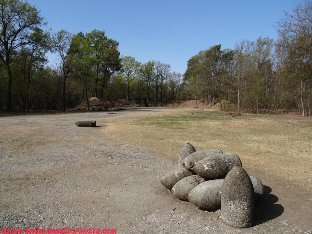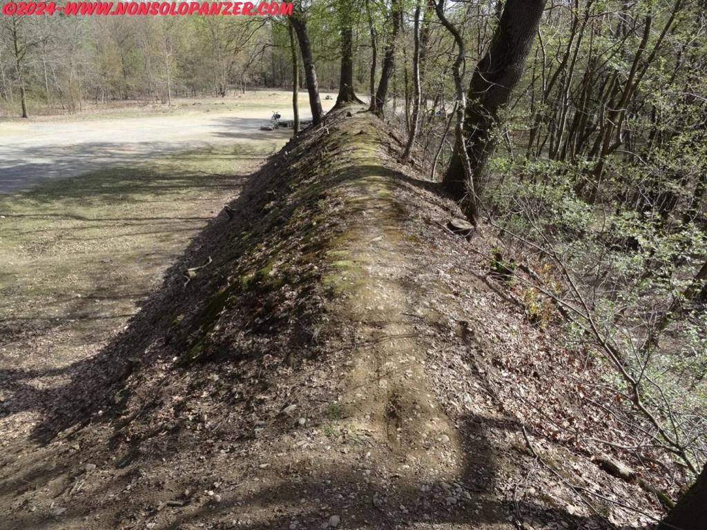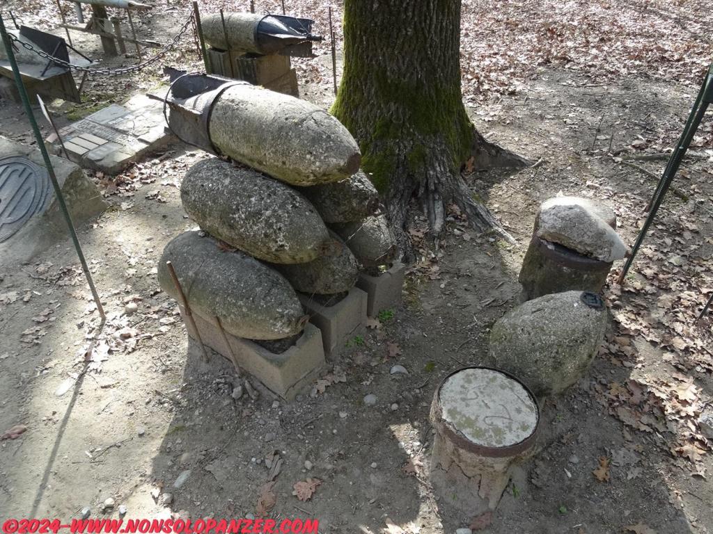 Una piazzola particolarmente ben conservata stupisce per le sue dimensioni e per l’imponente trincea paraschegge. Sul fondo di quest’ultima, una complessa struttura in cemento sembra essere stata progettata per spezzare il flusso d’aria generato dalle eliche, limitando il sollevamento di polvere.