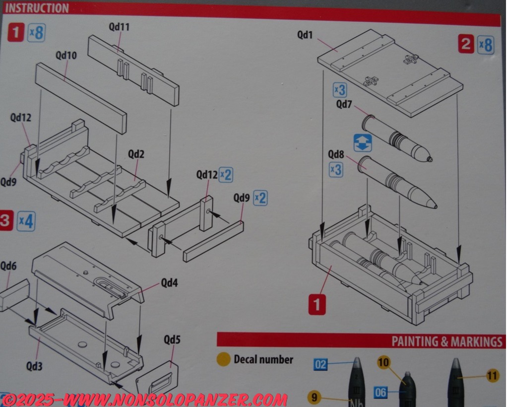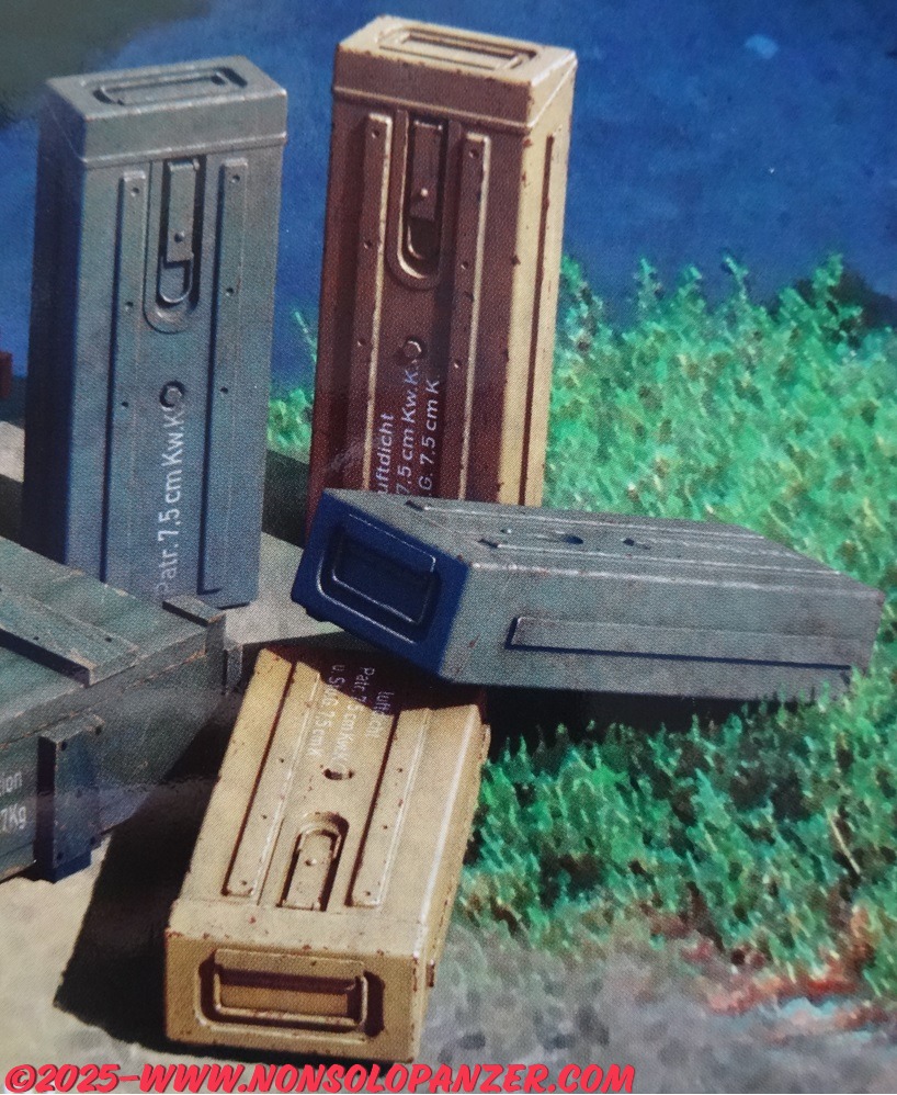 MiniArt has recently marketed the kit dedicated to the 7.5 cm KwK 37 L/24 bullets. Although the packaging mentions the StuG assault gun only, the shells are the same as those used by all vehicles that were equipped with the 7.5 cm KwK 37 L/24. It is, therefore, a very useful for all fans of 1/35 scale military modeling who want to enrich the models that reproduce the numerous vehicles that used this gun. Finally, the contents of the kit are well detailed and printed, including both bullets and transport crates as well as decals to reproduce the technical writings.