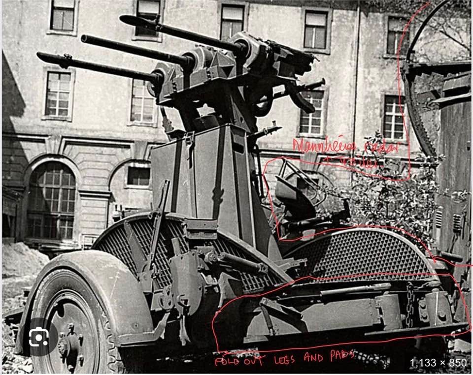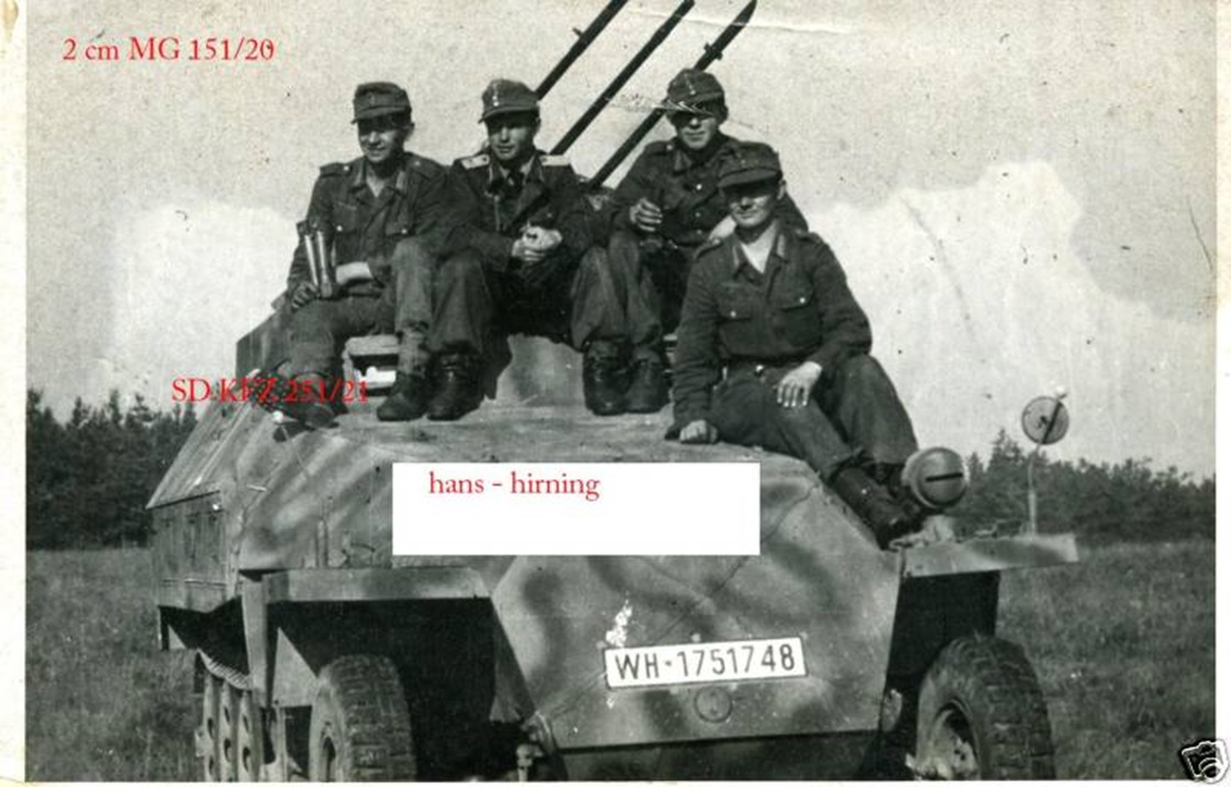 The rejection of the MG 151/20 made available large stocks of these weapons that were taken by the Wehrmacht, desperately in need of anti-aircraft and ground support armaments. The MG 151/20 therefore left the skies to be mounted wherever possible. In particular, a carriage was created for three MG 151/20s, known as “Drilling” whose very high volume of fire offered an excellent anti-aircraft “umbrella” and had devastating effects against enemy infantry and lightly armored vehicles. The “Drilling” equipped any vehicle that could carry it and a version with a platform for transport by trolley were also built.