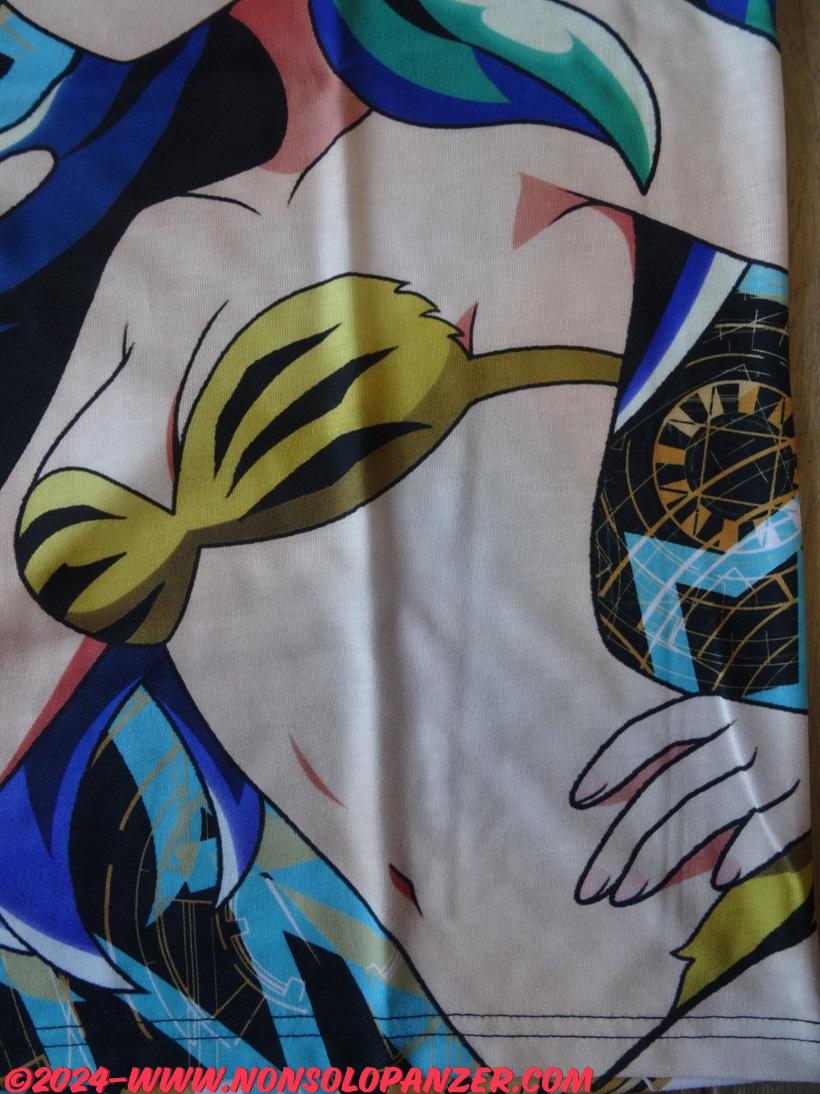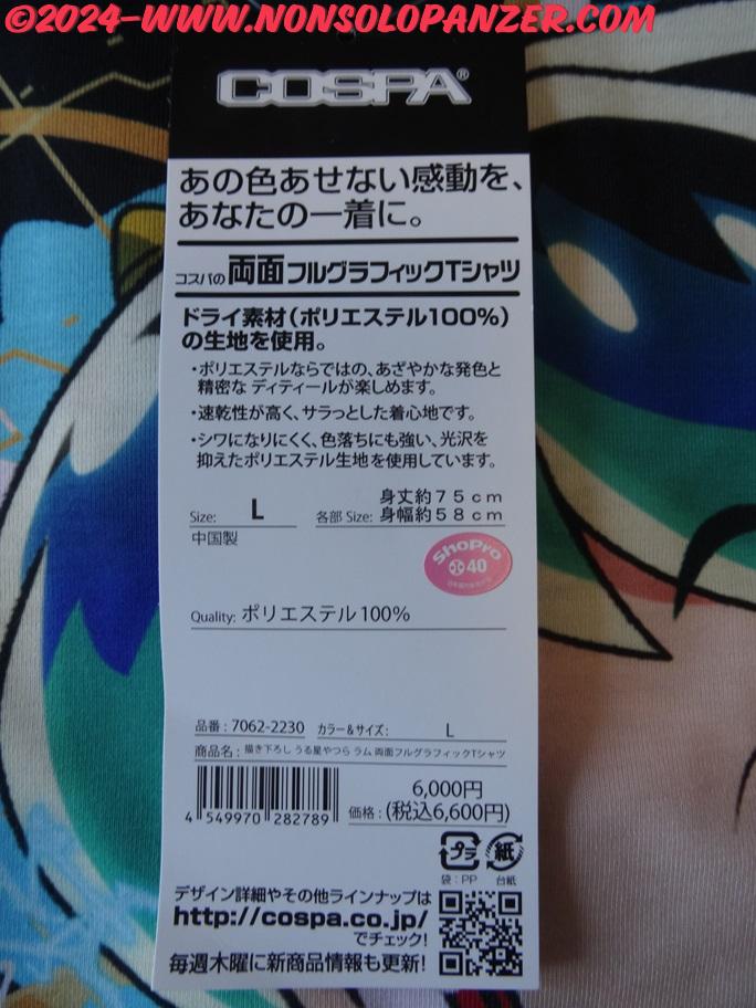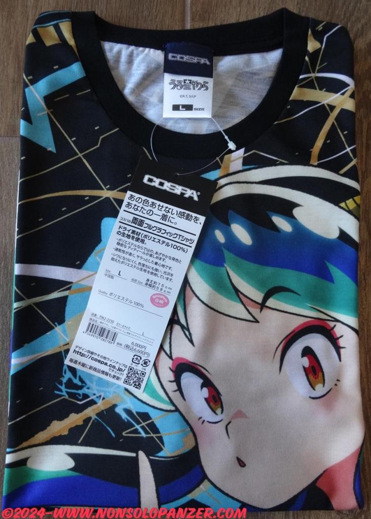 Quale fan di “Urusei Yatsura”, non potevo lasciarmi sfuggire questa Urusei Yatsura “Lum” Double-sided Full Graphics T-shirt in quanto dedicata a Lamù e, diversamente dalle classiche magliette, caratterizzata da immagini stampate sull’intera superficie della t-shirt. La grafica, inoltre, non solo mostra Lamù nel suo inconfondibile bikini tigrato ma offre anche un’impressione di grande dinamicità con fulmini e saette che sembrano irrompere dalla bella aliena come sempre avviene quando è adirata col povero ma colpevole Ataru. A tanta magnificenza, si aggiunge una qualità di tessuto, stampa e cuciture superiore ai già notevoli standard a cui Cospa ha abituato la sua clientela. Ne consegue che questa Urusei Yatsura “Lum” Double-sided Full Graphics T-shirt è assolutamente irrinunciabile per tutti gli appassionati di “Urusei Yatsura”.