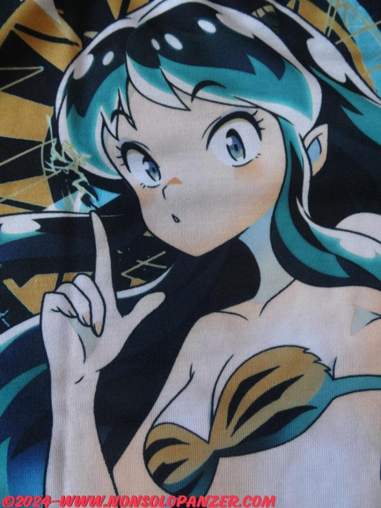 For those who don’t know, Rumiko Takahashi is the most famous and prolific mangaka in Japan. In addition to “Urusei Yatsura“, he has created other highly successful works such as “Maison Ikkoku“, “Ranma 1/2” and “Inuyasha“. Specifically, “Urusei Yatsura” is a manga serialized for the first time in Japan in 1978 from which the cartoon of the same name was based, which aired from 1981 to 1986. The series tells the adventures of Ataru Moroboshi, a inept and very unfortunate boy, and Lum (in Italy, Lamù), a beautiful alien daughter of the leader of an extraterrestrial civilization similar to Oni, the orcs of Japanese folklore. Due to a misunderstanding during a ridiculous competition with nothing less than the freedom of all humanity at stake, Lum is convinced that Ataru is in love with her by creating a love triangle with Shinobu, Ataru’s long-time girlfriend. The consequences and developments of this narrative incipit will be the most unthinkable and amusing that the human mind can conceive. “Urusei Yatsura” has become so deeply rooted in Japanese popular culture that it has also decreed the great success of the 2022 remake series of which the second season is currently in the works. Obviously, all this popularity feeds a vast merchandising of which this Urusei Yatsura “Lum” Double-sided Full Graphics T-shirt is part and, always marketed by Cospa, the already reviewed: Urusei Yatsura “Lum” Sticker, Urusei Yatsura “Lum” Full Color Hand Towel, Urusei Yatsura “Lum” Large Tote, Urusei Yatsura “Mendo Family” T-shirt, Urusei Yatsura Kotatsuneko T-shirt and Urusei Yatsura “Lum” Full Color Mug.