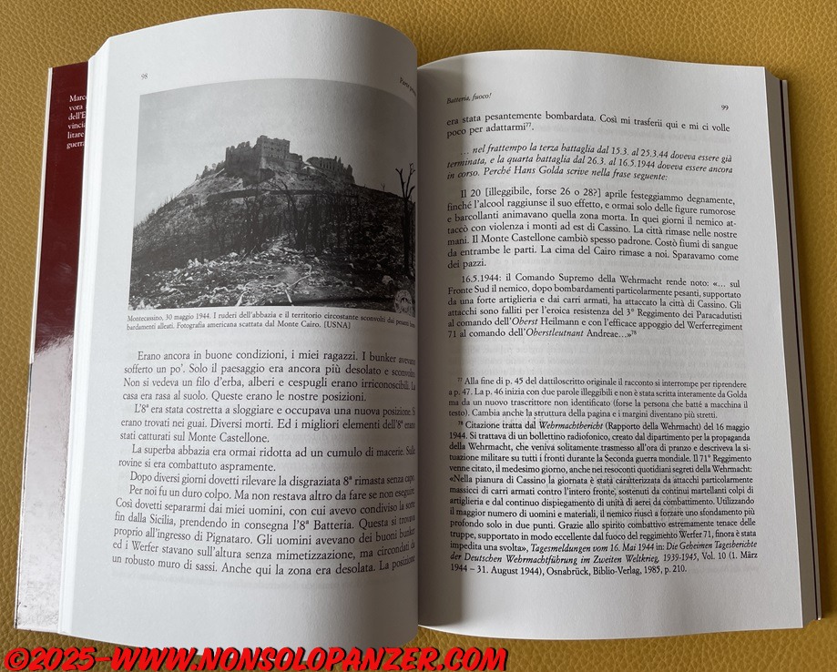 That said, I have the duty to dampen the enthusiasm that “Battery, fire! – Memories of an officer of the 71st Werfer-Regiment during the Italian campaign 1943-1945” could arouse in a fan of military history of the Second World War. The book is not an essay on the methods of use and technical characteristics of the Nebelwerfer, nor is it a description of the peculiarities of the Italian front and the strategies applied by the German army in this theater of operations. It is a personal diary, with the strengths and weaknesses that this entails.