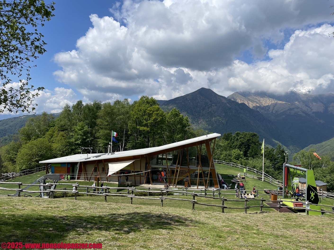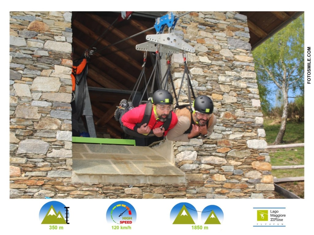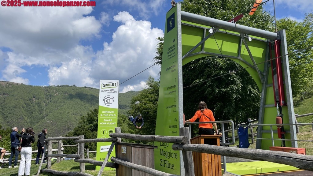 Arrivato all’Alpe Colle (1280m sul livello del mare) è finalmente iniziata la discesa che mi ha portato a Piancavallo da dove ho preso la strada verso Aurano. Poco prima del paese, mi attendeva il punto di arrivo della Zip Line Lago Maggiore. Lì mi sono incontrato con il mio amico Roberto e i suoi figli per un pranzo all’insegna della compagnia e dell’adrenalina. L’occasione, infatti, era troppo ghiotta e, dopo qualche iniziale titubanza, abbiamo deciso di fare tutti insieme la Zip Line. È stata un’esperienza incredibile: sospesi nel vuoto, sopra una profonda gola, 350 metri di dislivello, un minuto e quaranta secondi di discesa con punte a 120 km/h, la sensazione di volare, il vento che urlava nelle orecchie. Ho provato una scarica di emozioni che non dimenticherò facilmente. È un volo che ti fa sentire libero, piccolo e immenso allo stesso tempo.