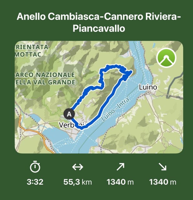 Il giro è stato magnifico. I panorami primaverili hanno dato nuova vita a un percorso già amato, ma devo ammetterlo: la salita da Cannero è troppo impegnativa. Se mai rifarò questo anello, tornerò alla versione autunnale, salendo da Vignone e Bee, dove le pendenze sono meno traumatiche.