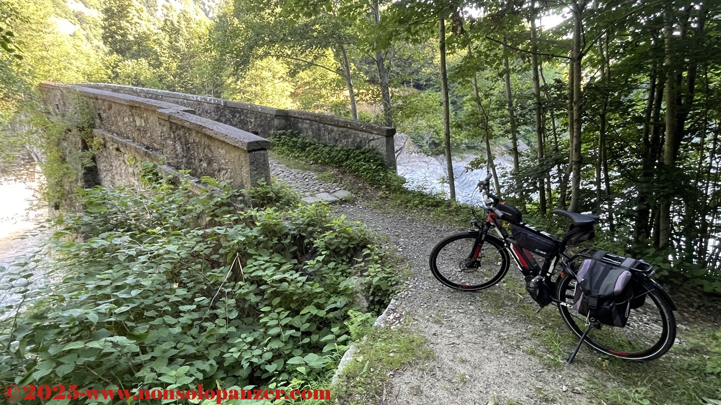 Il primo tratto, da Balmuccia a Scopetta, si è subito rivelato impegnativo. Si tratta di un vero e proprio sentiero, con sassi e rocce sconnesse dalla pioggia e brevi tratti con pendenze importanti. In breve, è necessaria una mountain bike per muoversi in sicurezza. La vista sulle rapide del Sesia chiuse in una gola è mozzafiato ma consiglio di raggiungere Scopetta seguendo la Strada Provinciale 299, più sicura e scorrevole.