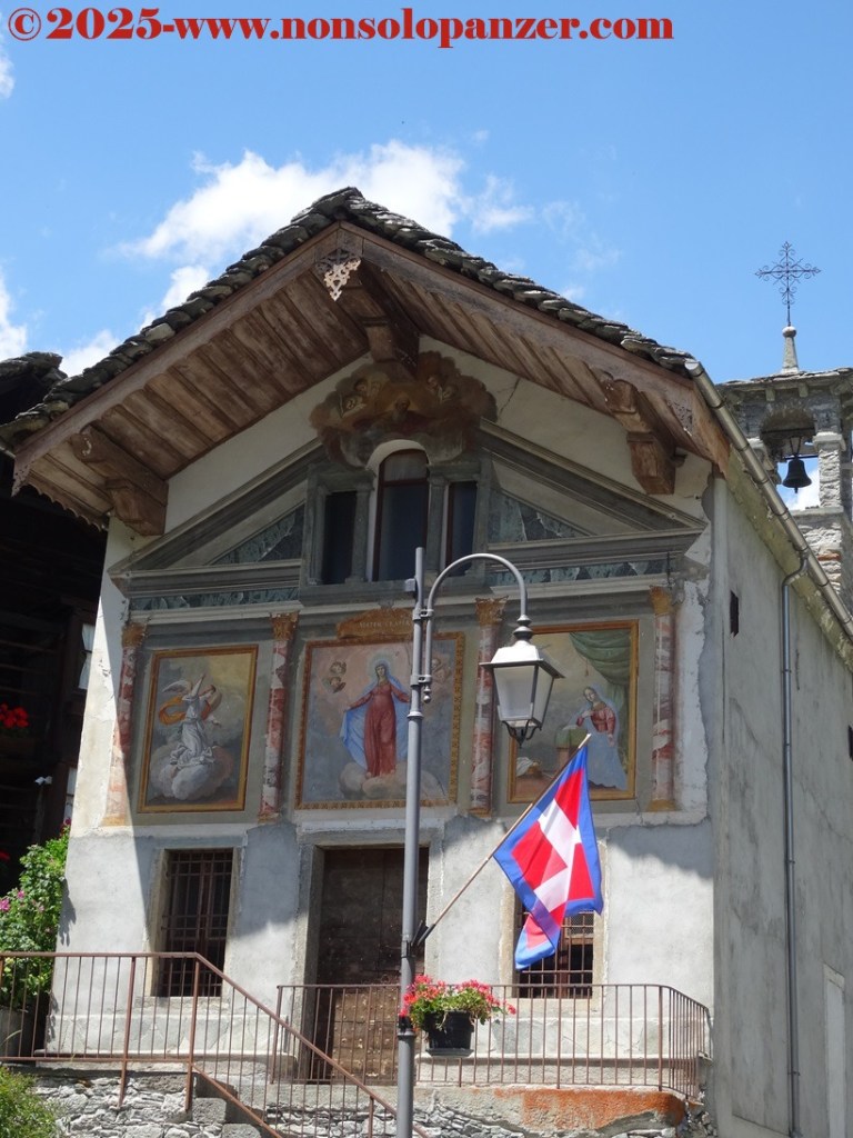 From Scopetta onwards, the route actually becomes a cycle path and meanders pleasantly from one side of the river to the other, crossing villages that seem to come out of a storybook. Here the Walser culture is everywhere: this people of Germanic origin settled in Val Sesia in the thirteenth century, bringing with them unique architectural and artistic traditions. Walser houses, made of wood and stone, are often frescoed with religious and floral motifs as demonstrated, in particular, by the square of Rusa and, above all, the church of San Cristoforo in Riva Valdobbia, where I am enchanted by the magnificent fresco of the “Last Judgment“: a work that alone is worth the trip.